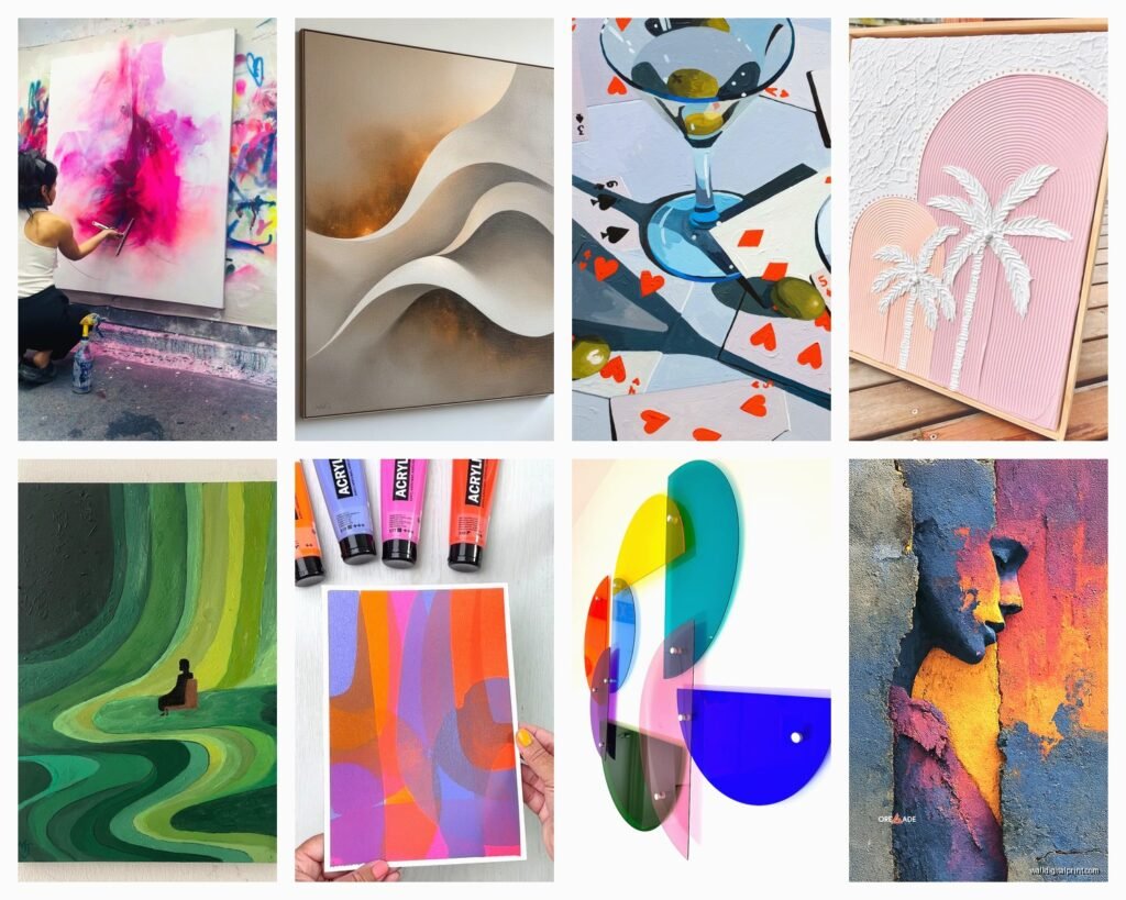 Backlit acrylic is having a moment right now. You mount LED strips behind the acrylic and it glows. Works amazingly well for abstract art, geometric designs, or anything with bold colors. I installed one in a client’s dining room last month and it’s become the whole focal point of the space. Just make sure you plan for the electrical work beforehand because routing power to a wall-mounted piece can get complicated.