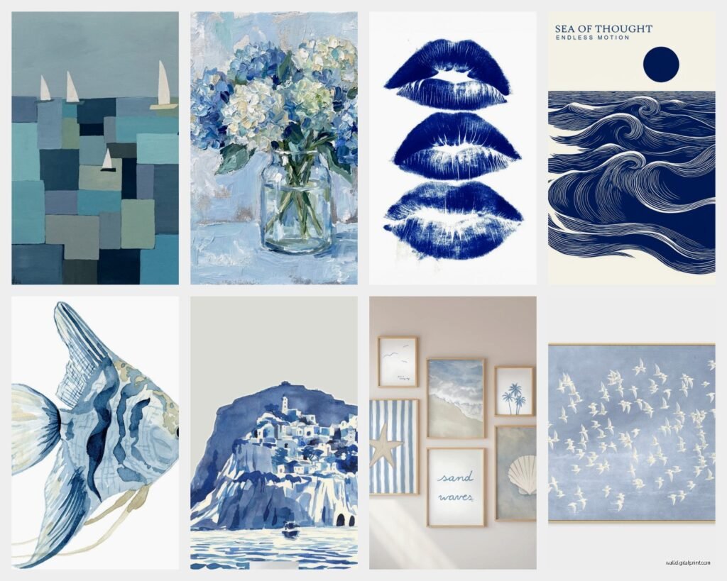 So I’ve been working with blue wall art for like seven years now and honestly the whole ocean-to-sky spectrum thing used to stress me out because clients would say “I want blue” and I’d show up with navy samples and they’re thinking turquoise and… yeah. Let me just dump everything I know about actually picking blue art that works.