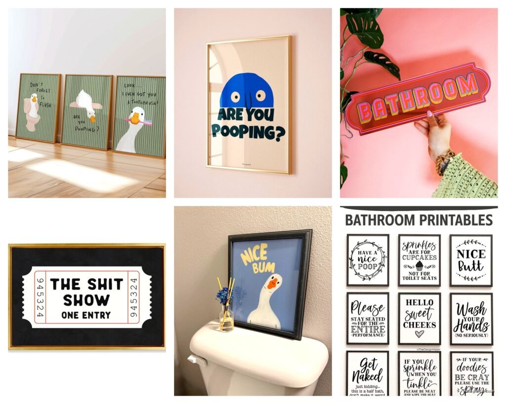 So I’ve been absolutely obsessed with bathroom wall art lately and honestly it’s because my friend Rachel installed this awful motivational quote thing in her powder room and I couldn’t stop thinking about how much better options are out there now.