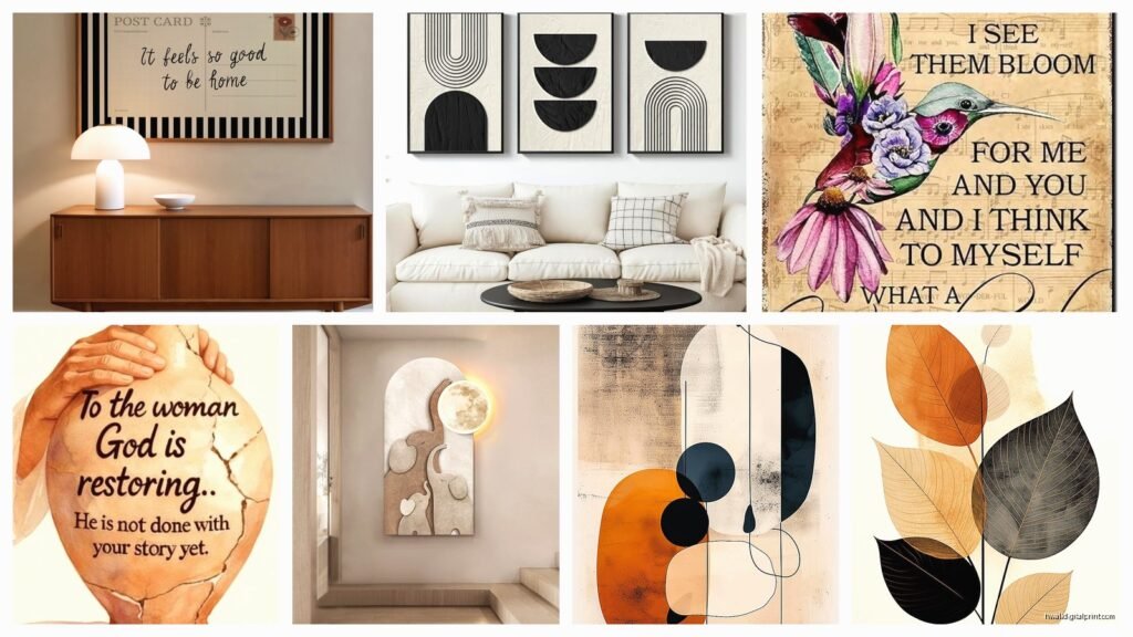 Those “inspirational quote” pieces in basic fonts – just no. They look dated immediately and screamed 2015 Pinterest. The really thin canvas prints that are basically just printed fabric stretched over a frame also feel cheap. If you can see the canvas texture competing with the image texture it’s not gonna look good on your wall.