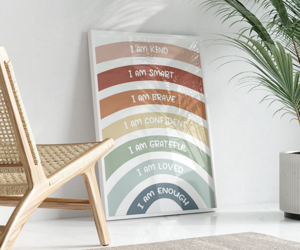 Affirmations for Kids, Rainbow Affirmations Print, I am Kind Smart Loved, Boho Inspirational Nursery Decor set of 1