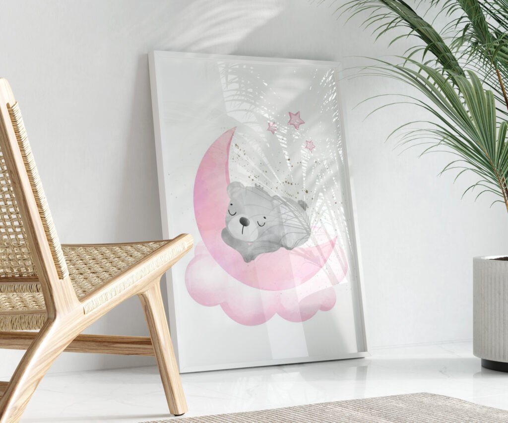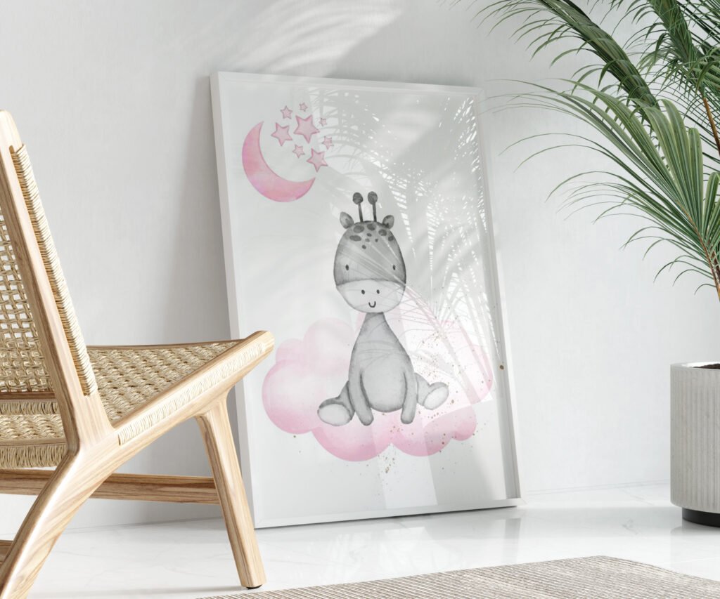 Animal nursery, nursery decor girl pink gray, nursery decor girl woodland animals, bear, elephant, giraffe, baby girl set of 1