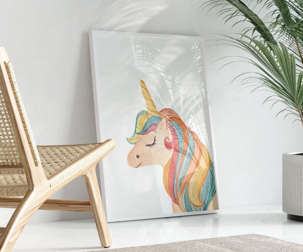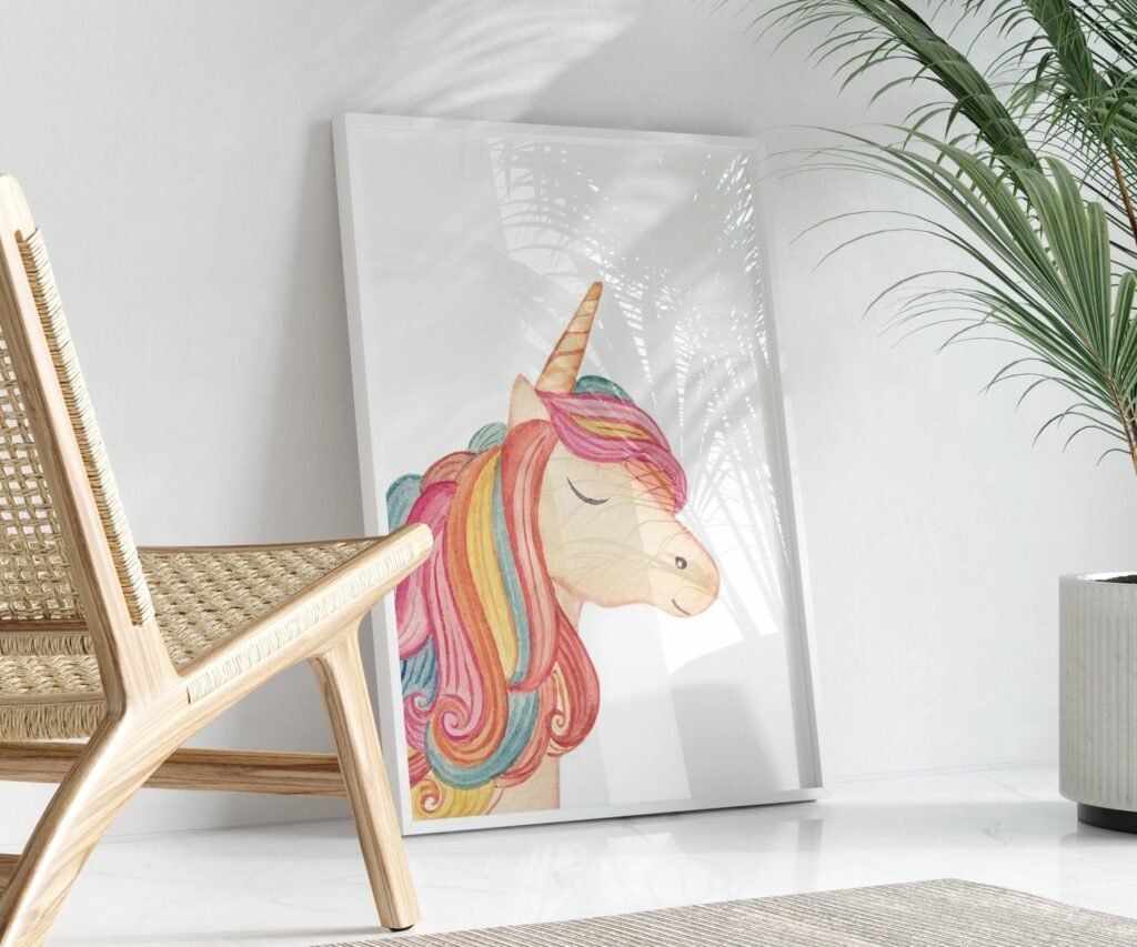 set of 1 Unicorn wall art set, Printable unicorn art, Girls room decor, Unicorn gold glitter, Unicorn prints,cloud rainbow
