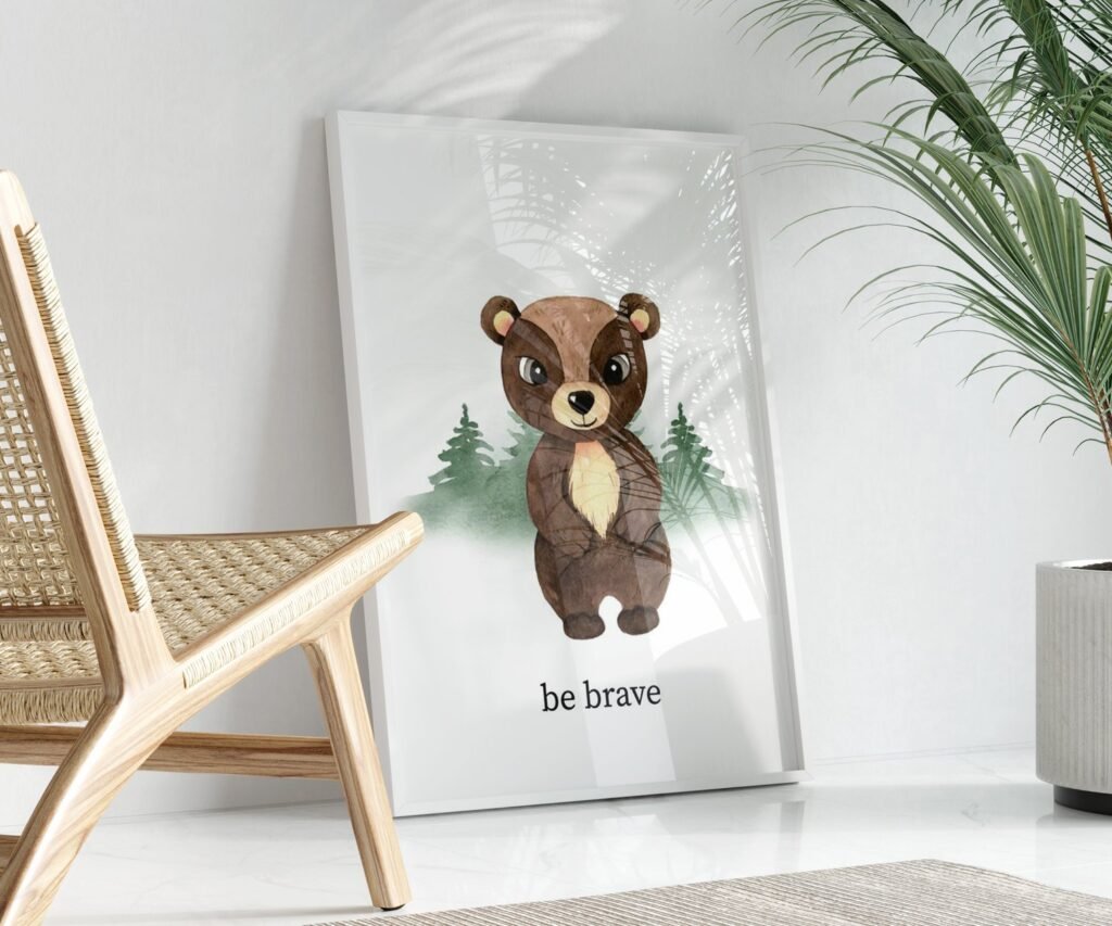 set of 1 Woodland Nursery wall art, Bear Wall art, Forest nursery- Nursery Prints Watercolor Woodland