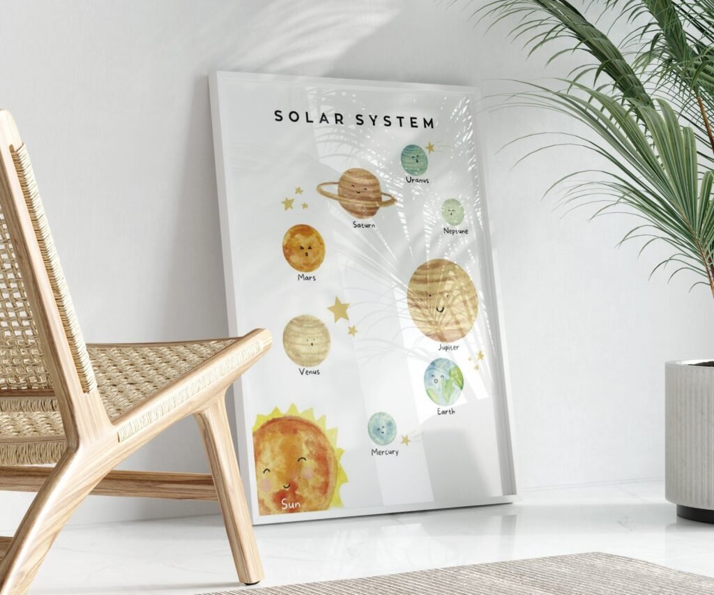 Solar System Educational Posters, Montessori Classroom, Neutral Kids Toddler Playroom Decor set of 1