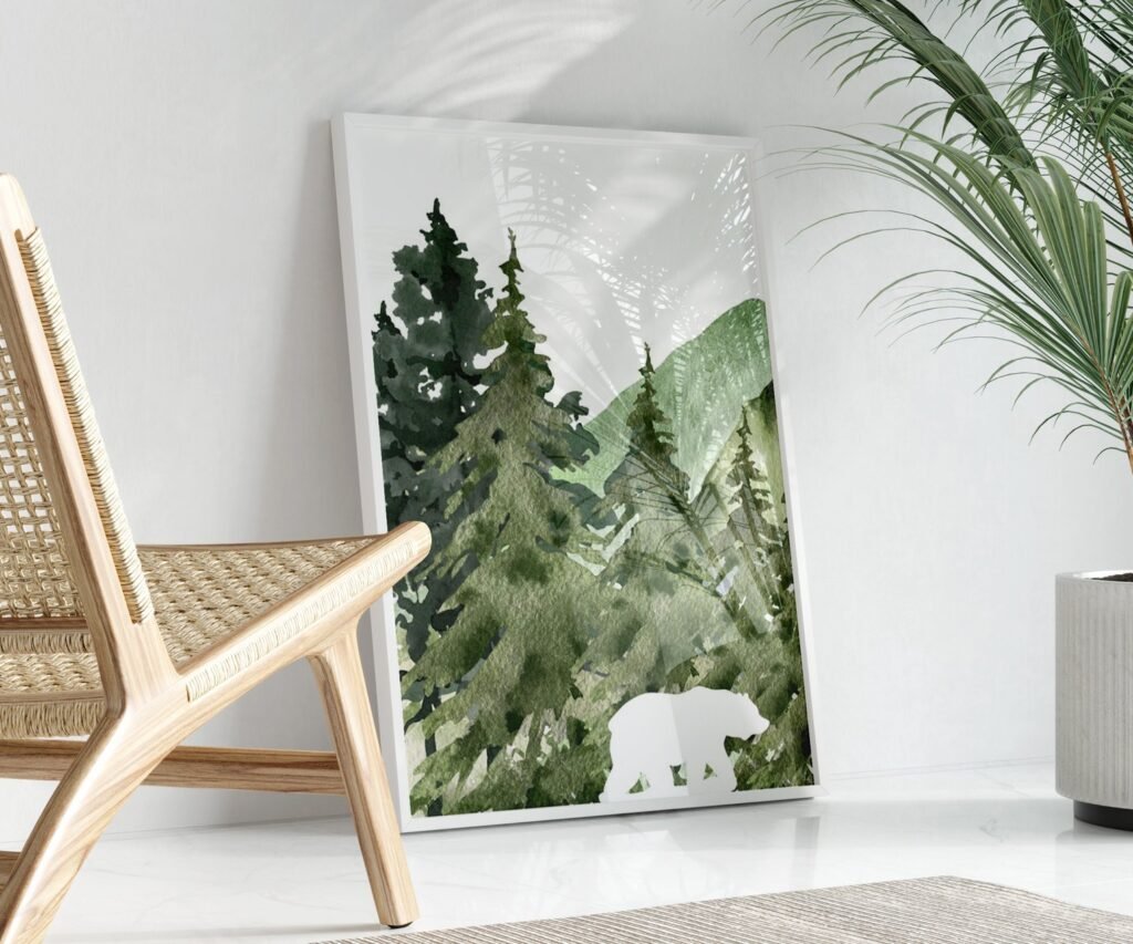 Woodland, mountain, tree nursery decor, adventure theme nursery, forest, sage green, woodland animals set of 1