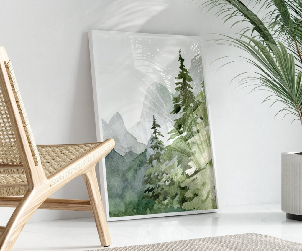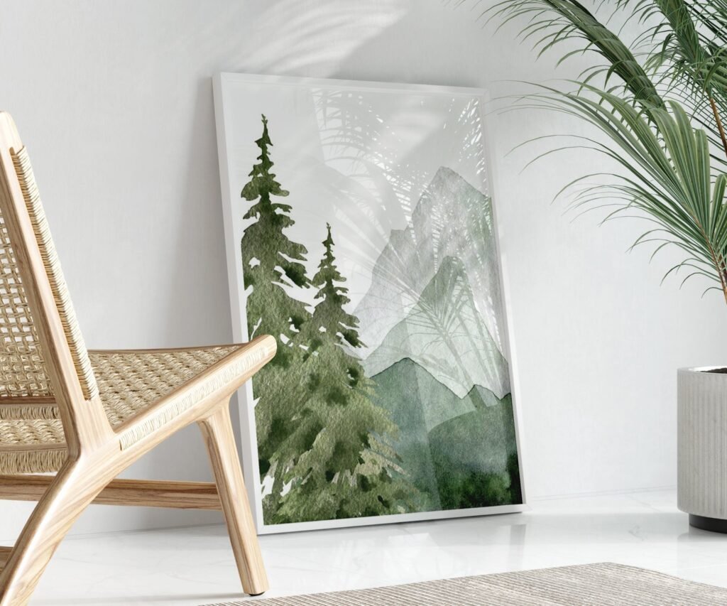 mountain, nursery wall art, tree nursery adventure nursery, forest, sage green,woodland animals set of 1