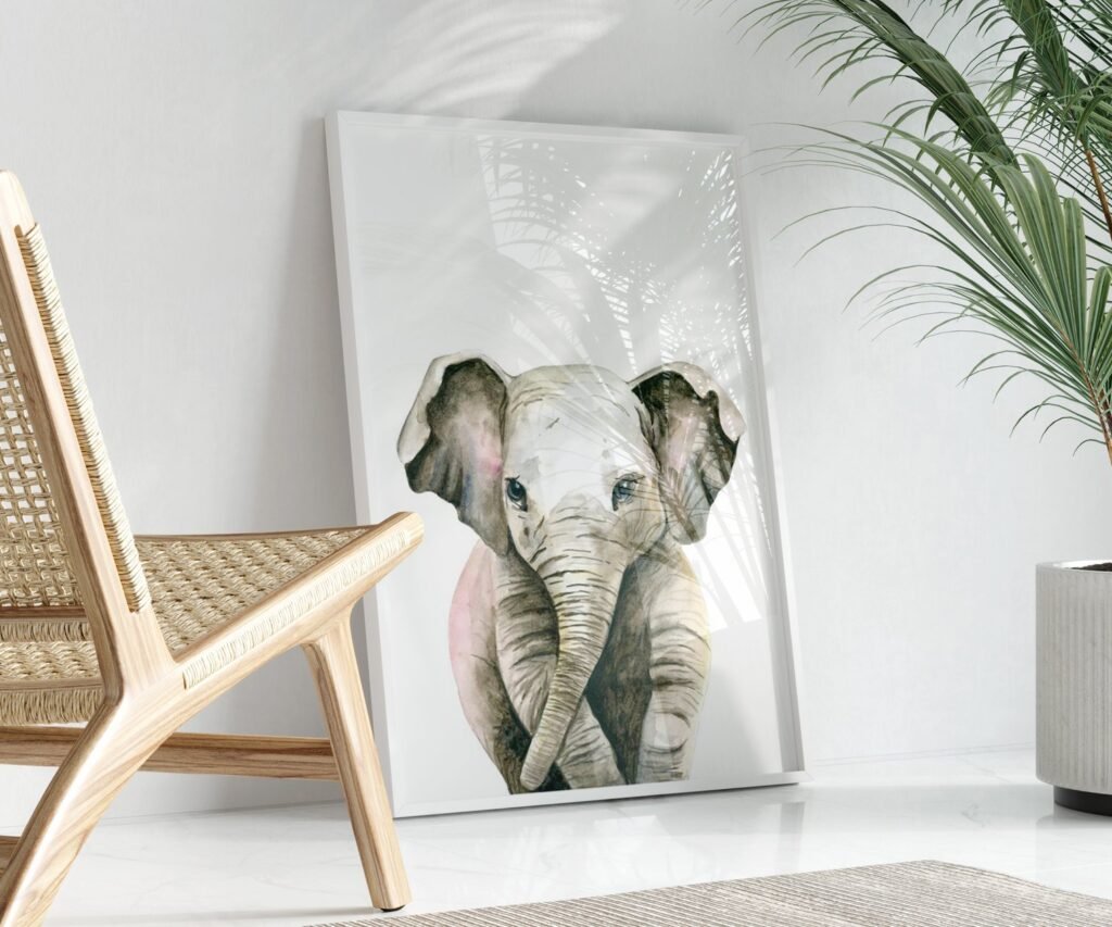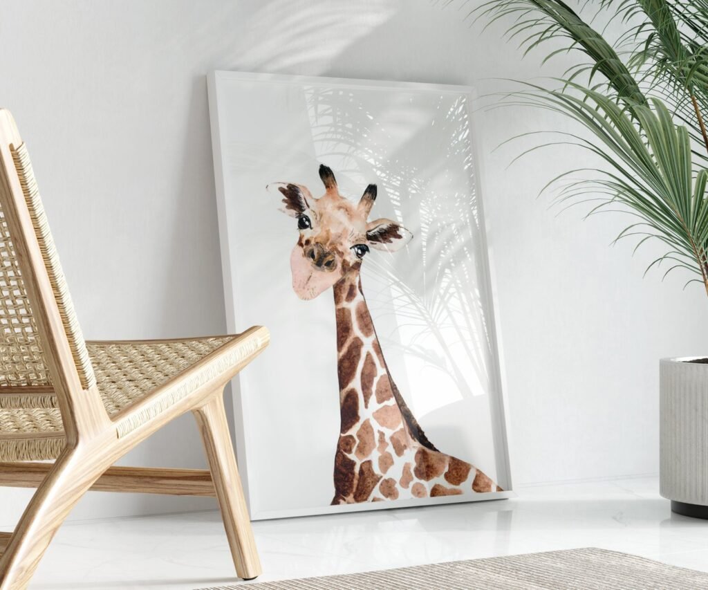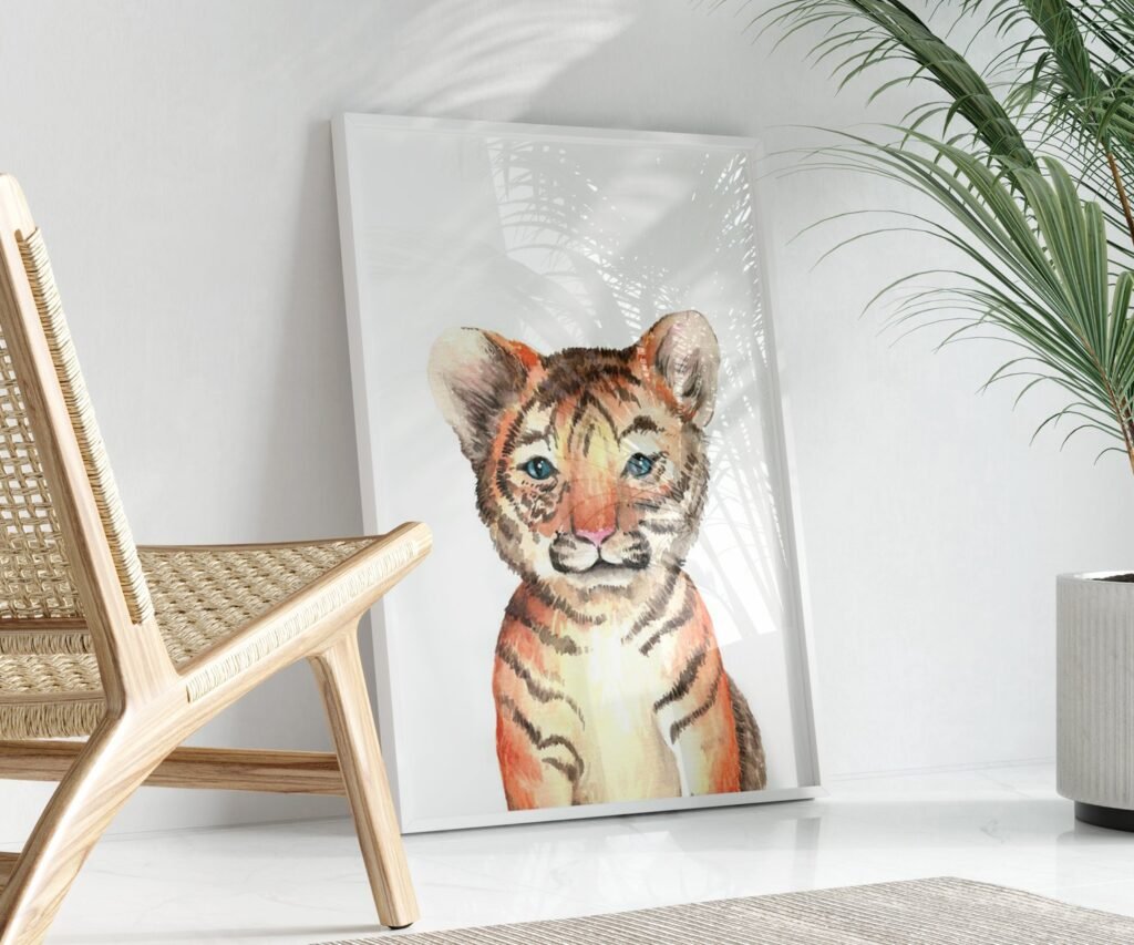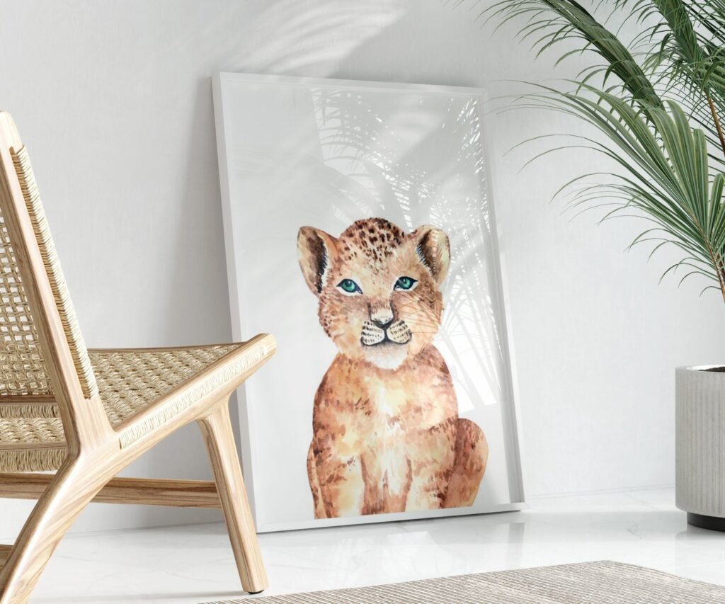 Lion tiger monkey giraffe elephant set of 1, Woodland Baby Animal Posters
