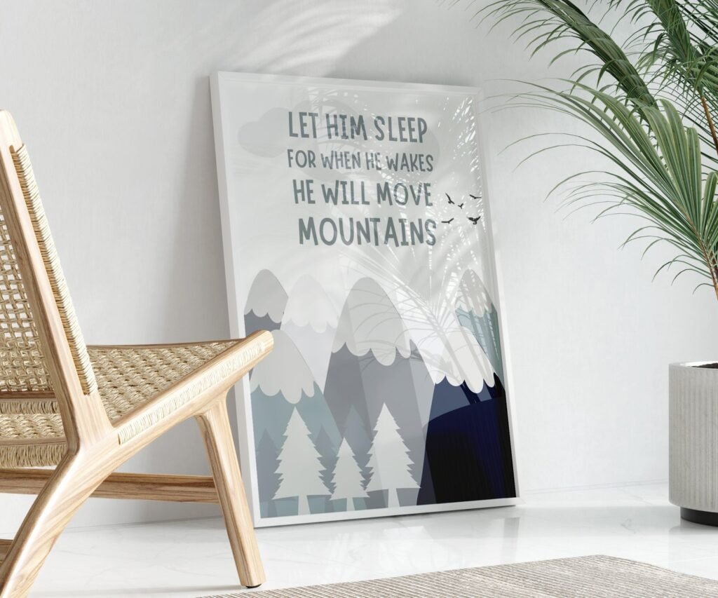 Let him sleep for when he wakes he will move mountains, mountains adventure, woodland set of 1
