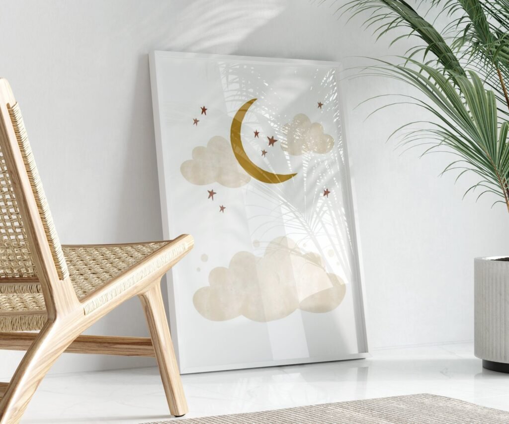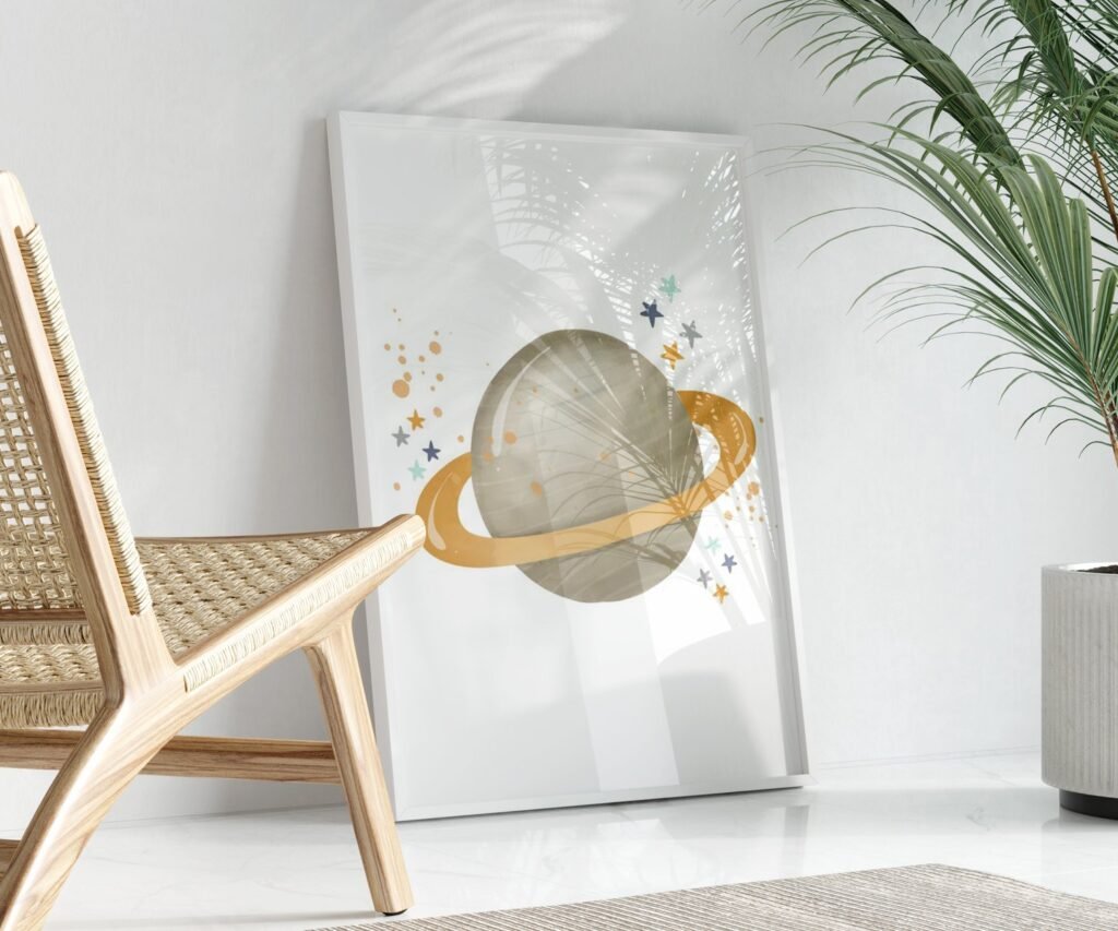Neutral Nursery Print set of 1, Space, Earthy Tones, Planet