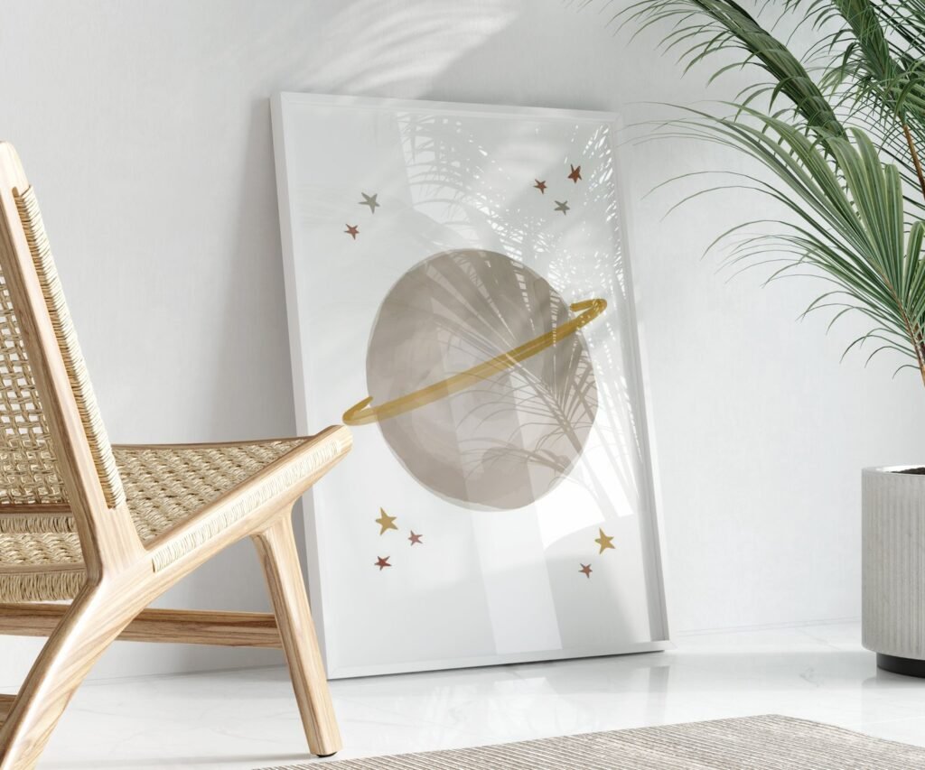 Neutral nursery print set, Space, Earthy tones, planet set of 1
