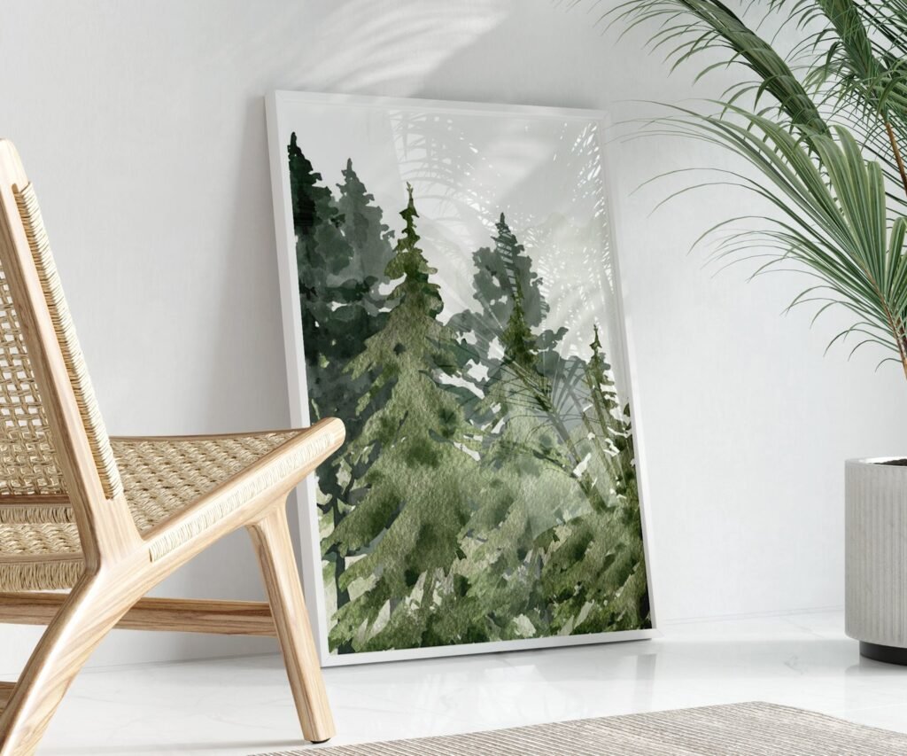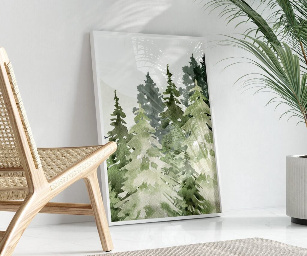 Mountain, woodland, sage green, adventure nursery forest nursery, tree set of 1