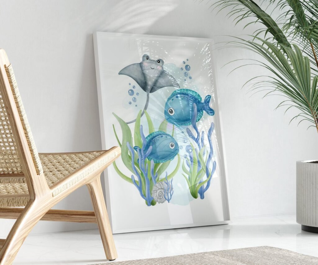 Nautical nursery, Ocean nursery decor, under the sea nursery set of 1