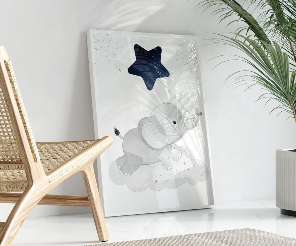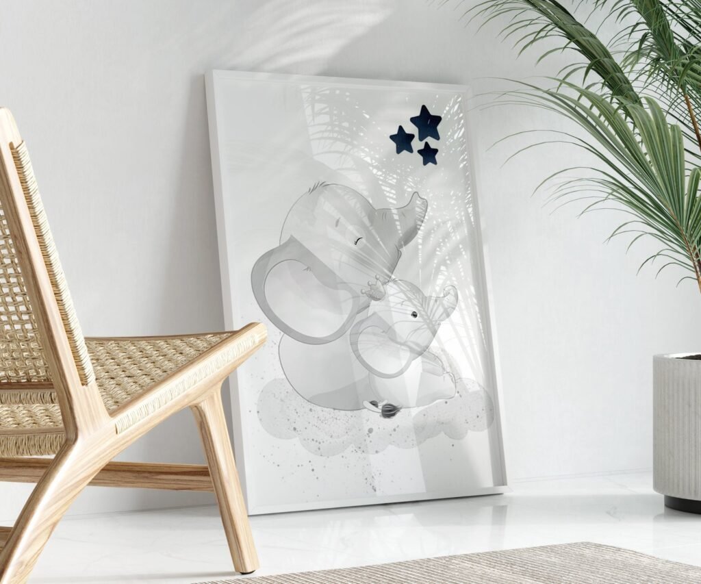 Nursery decor boy elephant, nursery wall art boy set of 1