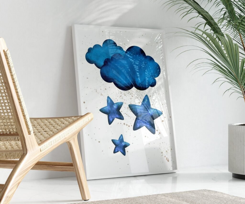 Nursery decor boy space, Nursery wall art space, Space nursery set of 1