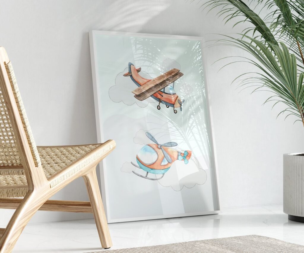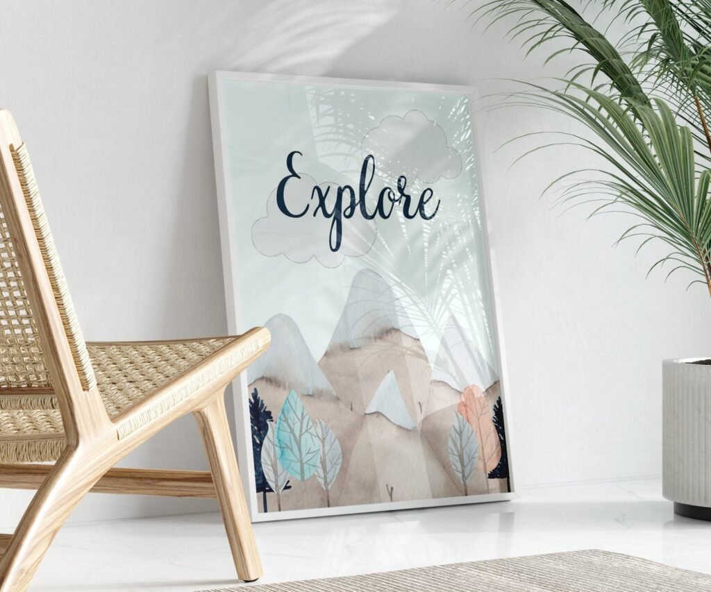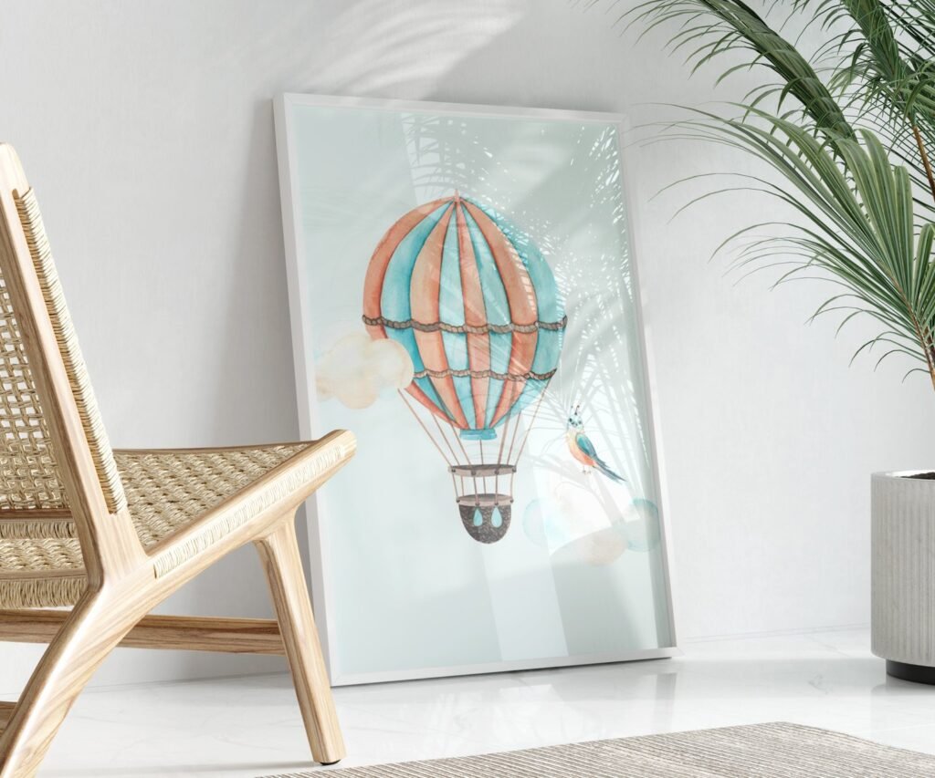 Nursery decor mountain, adventure nursery, travel nursery, gender neutral, explore, hot air balloon, plane set of 1