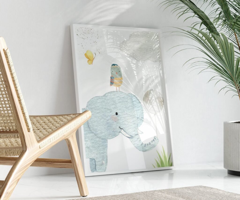 Nursery decor boy elephant, nursery wall art boy set of 1