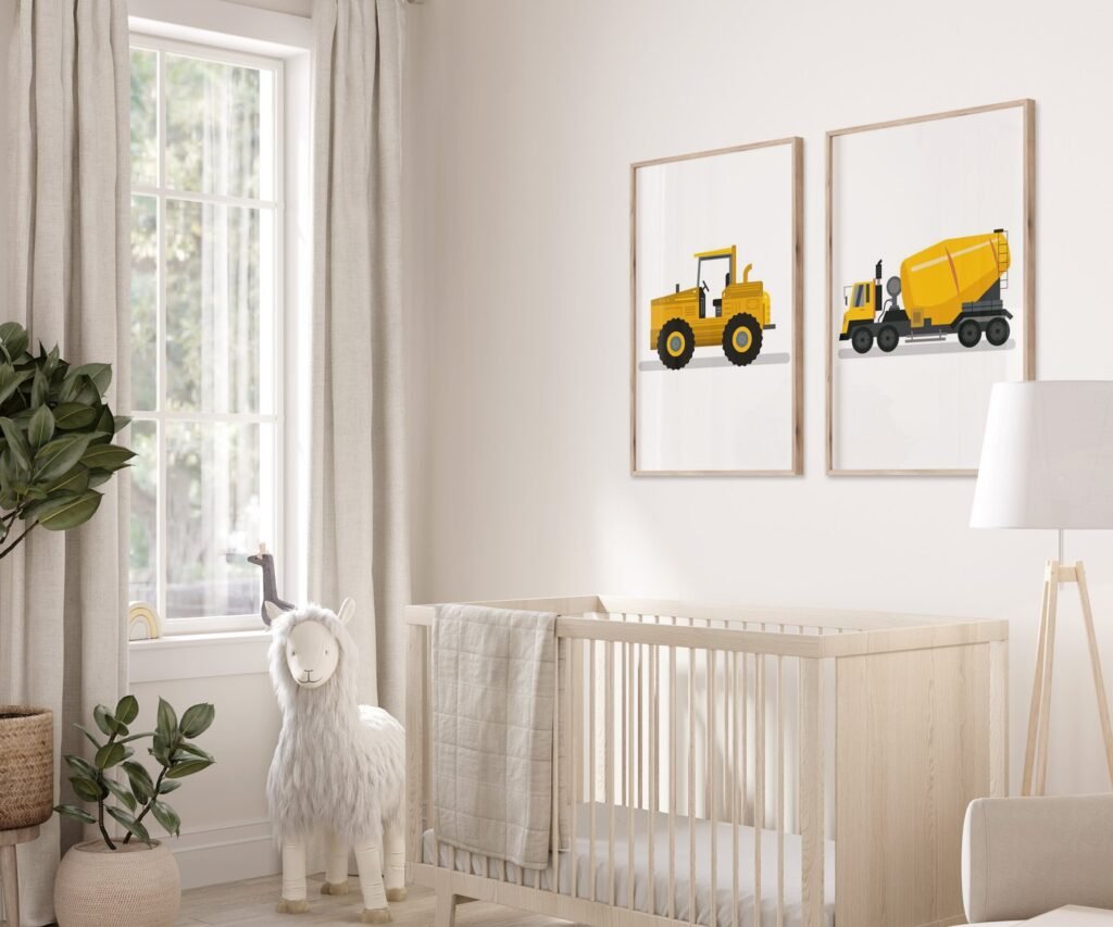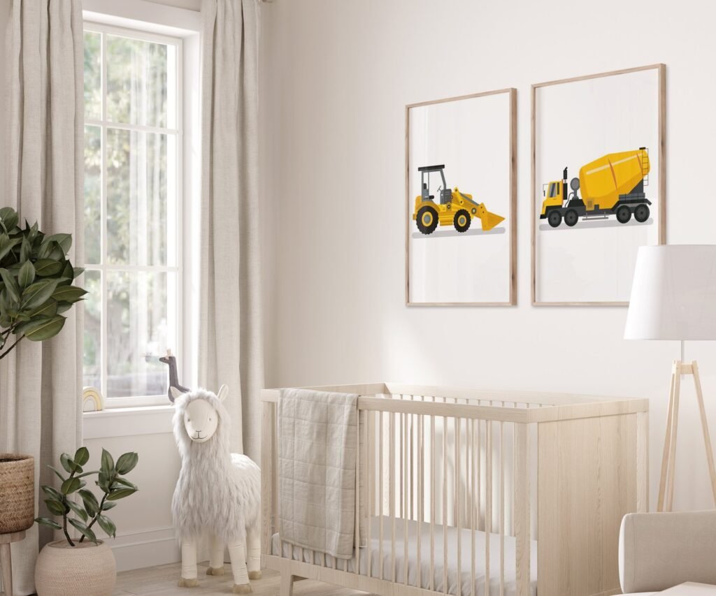 set of 2 Vehicle Prints, Construction Wall Art, Transportation Print Nursery, Kids Gallery Wall Set, Truck Wall Art, Nursery Truck Prints