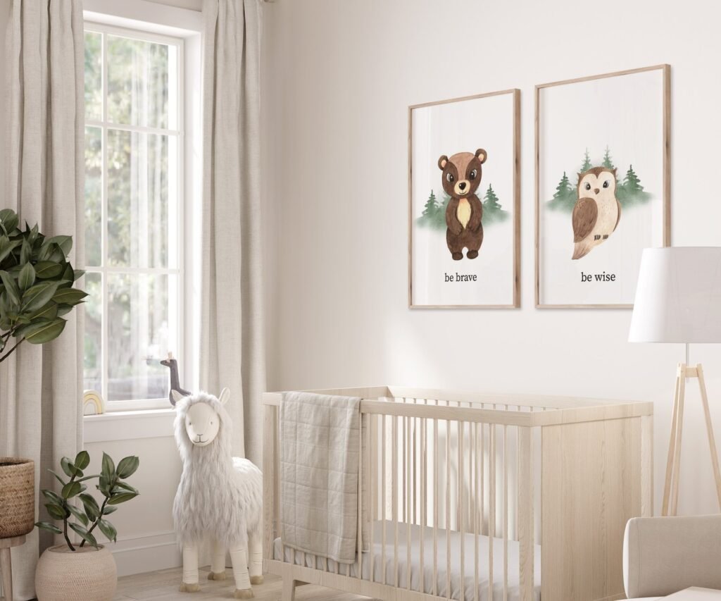 set of 2 Woodland Nursery wall art, Bear Wall art, Forest nursery- Nursery Prints Watercolor Woodland