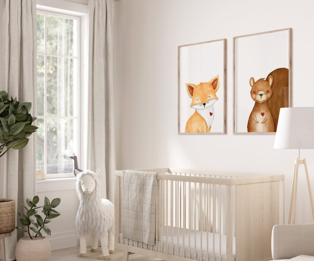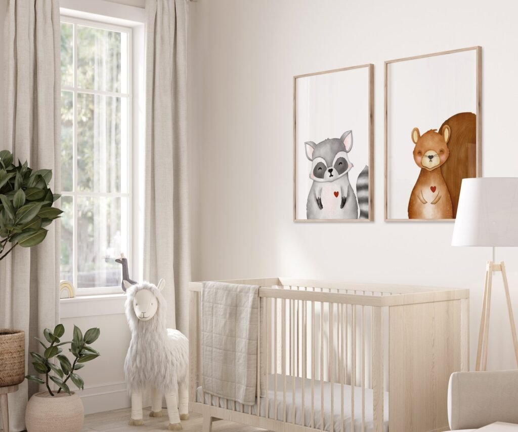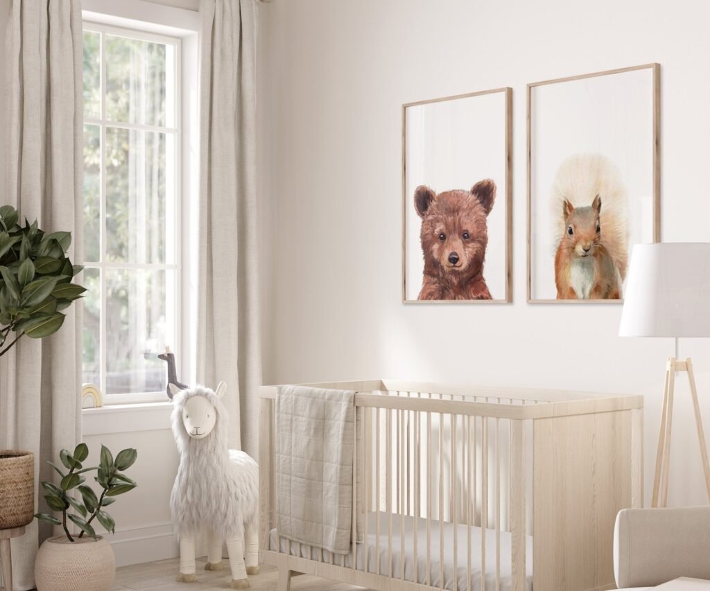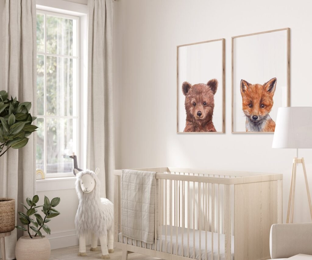 Woodland nursery prints, set of 2 Prints, Woodland Nursery decor, Nursery wall art, Baby Animal prints for nursery