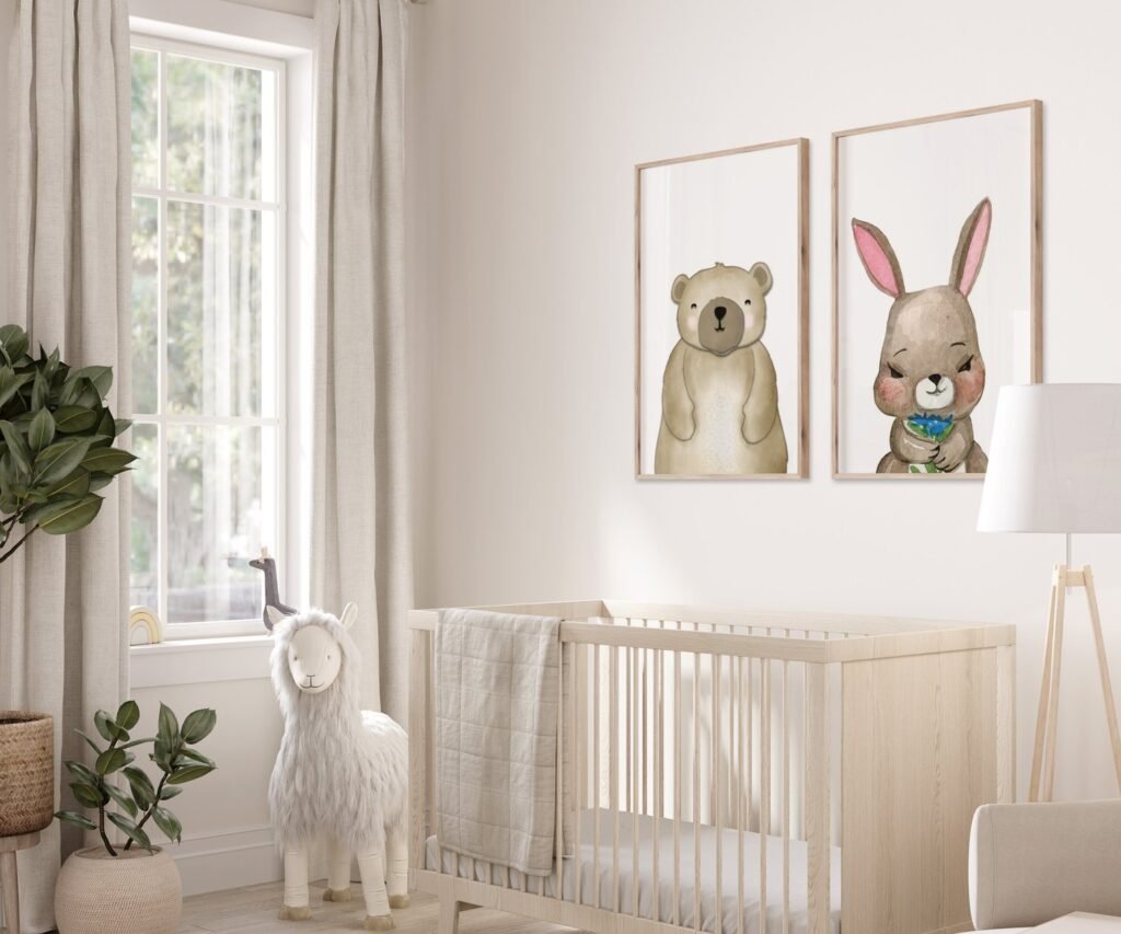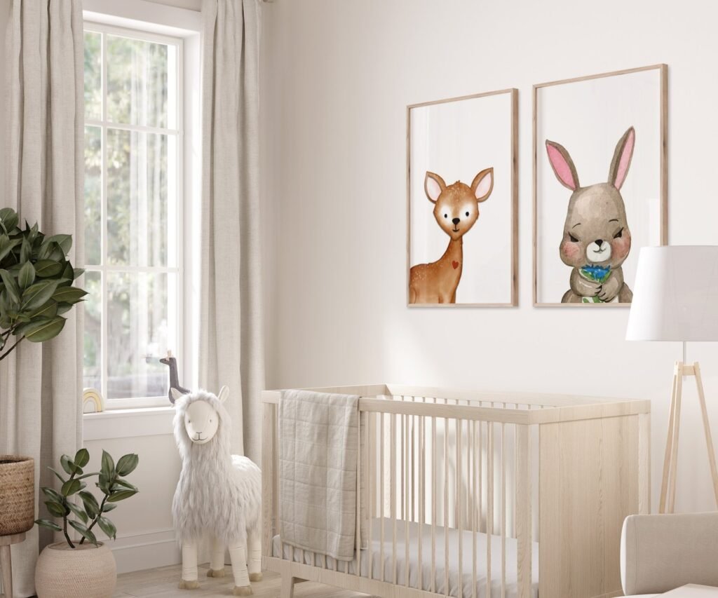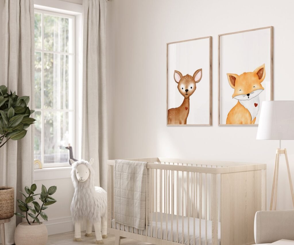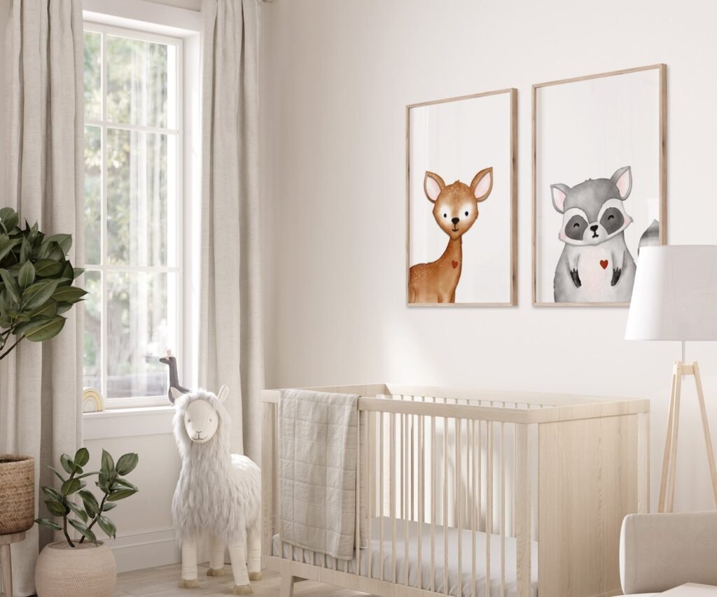 Woodland nursery prints, set of 2 Prints, Woodland Nursery decor, Nursery wall art, Baby Animal prints for nursery