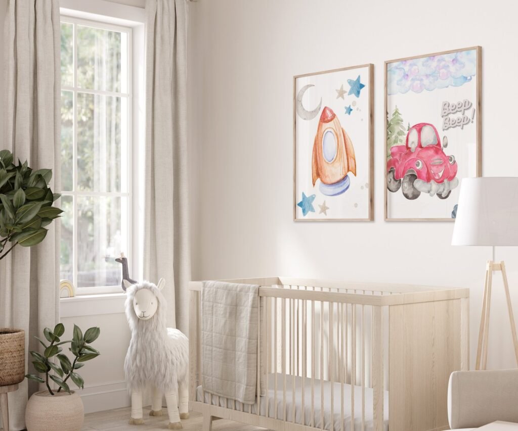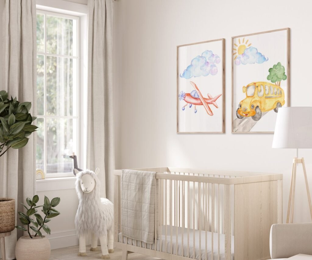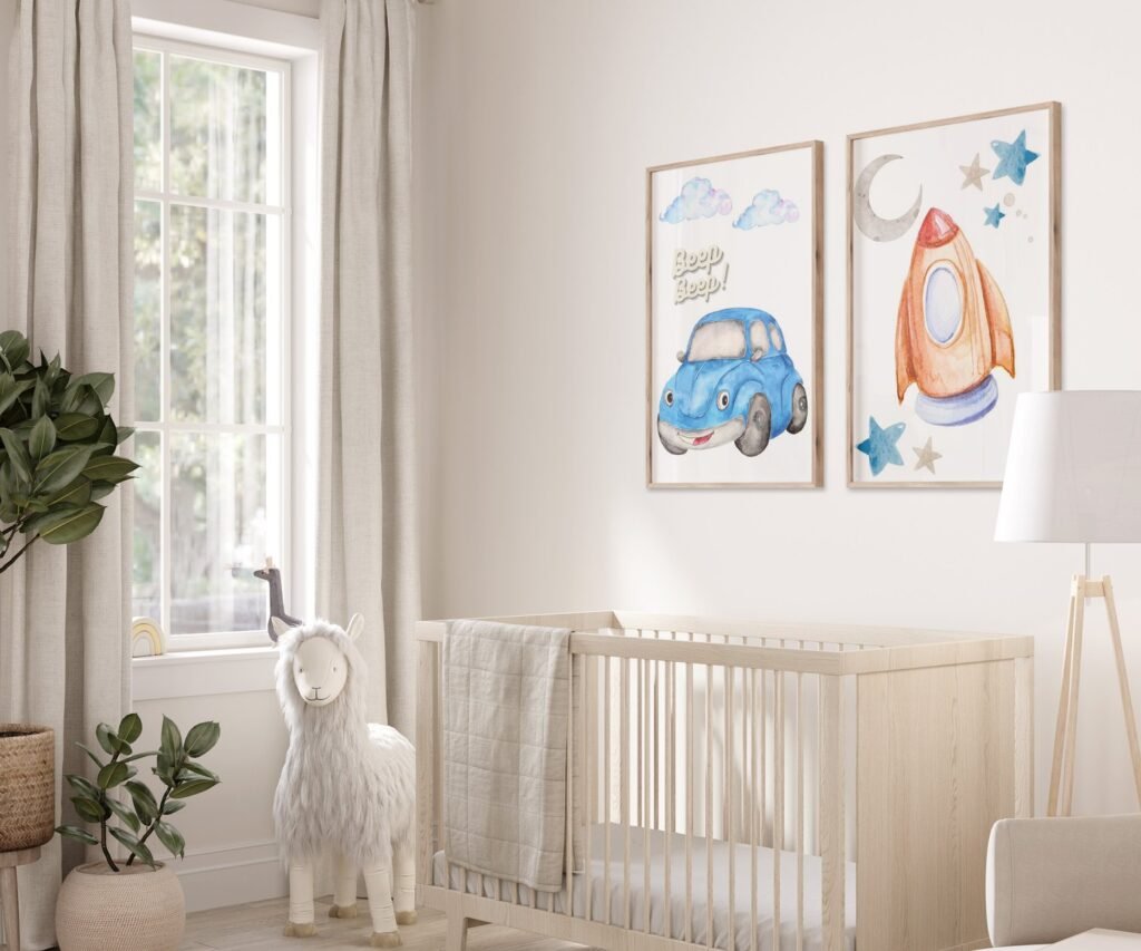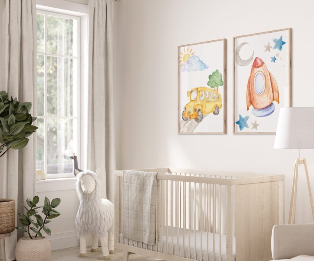 Car Nursery,Train, Rocket, Plane, transportation set of 2