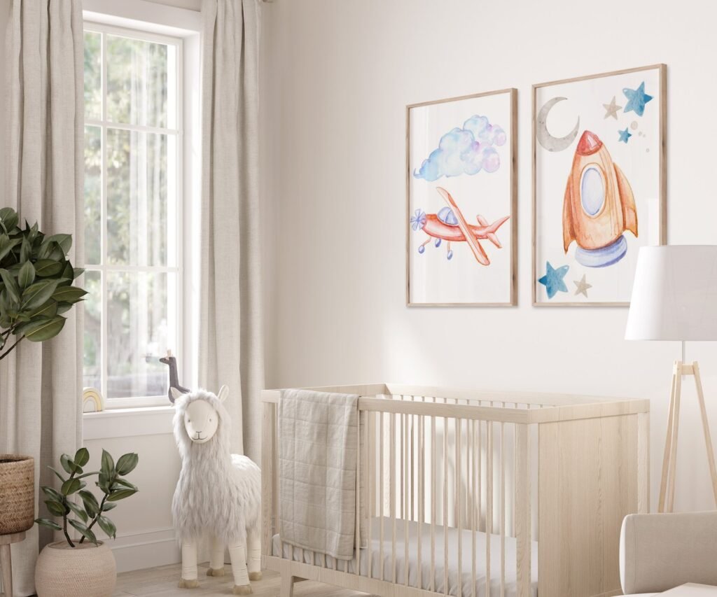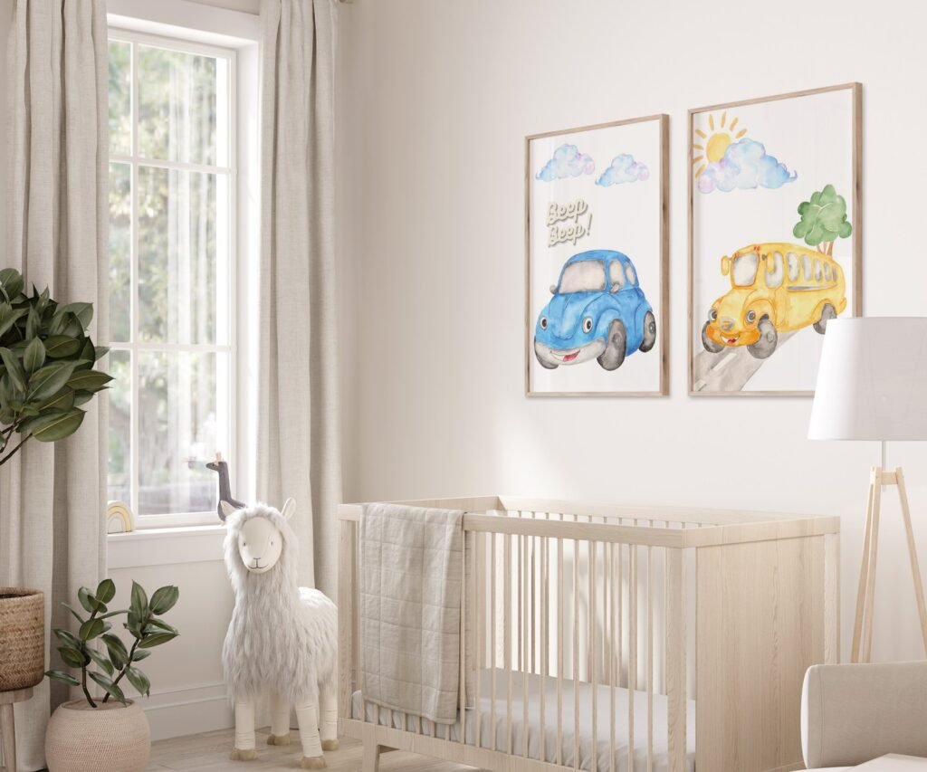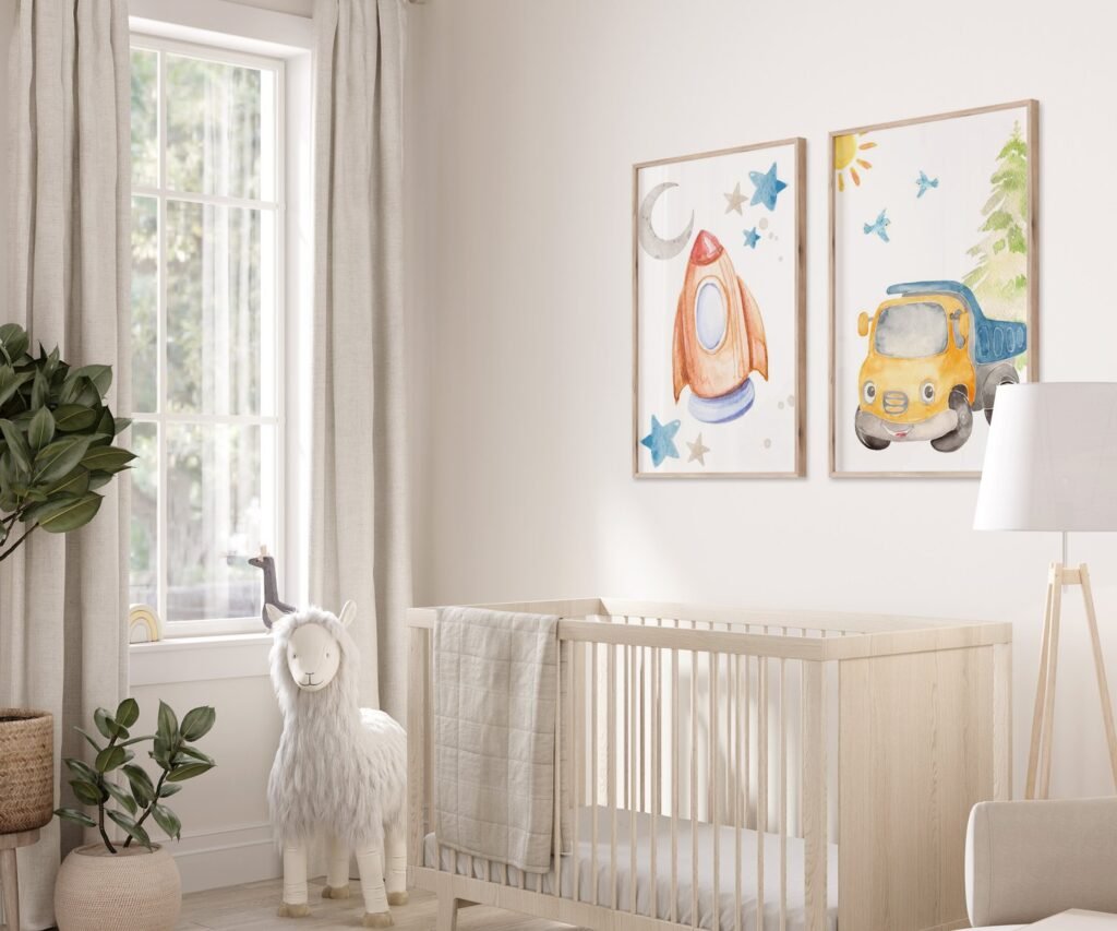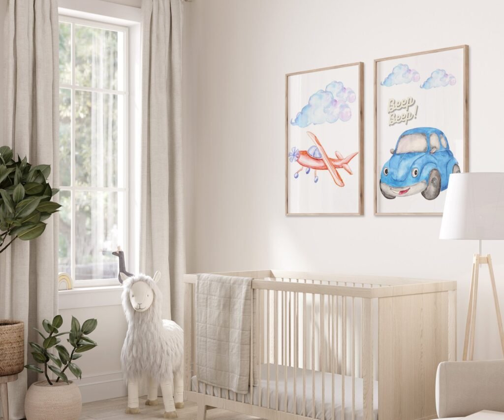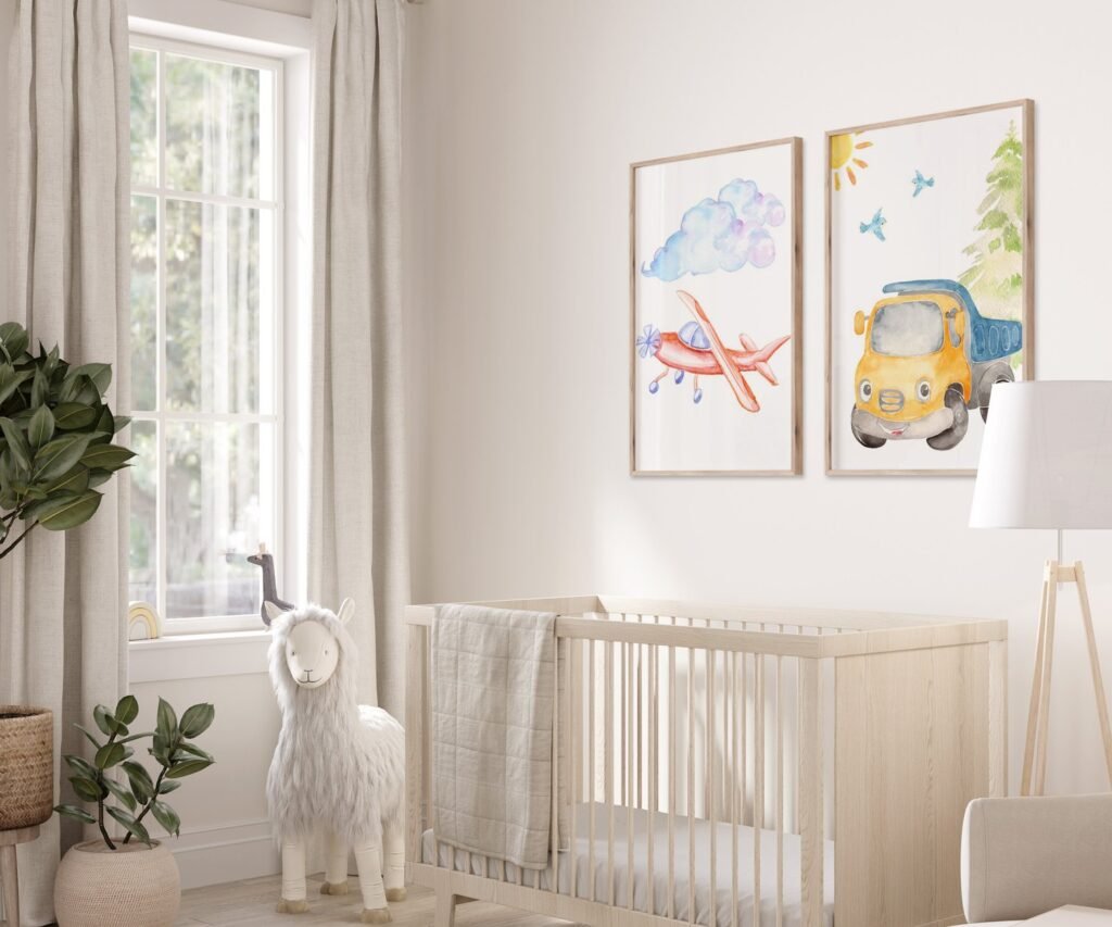 Car Nursery,Train, Rocket, Plane, transportation set of 2