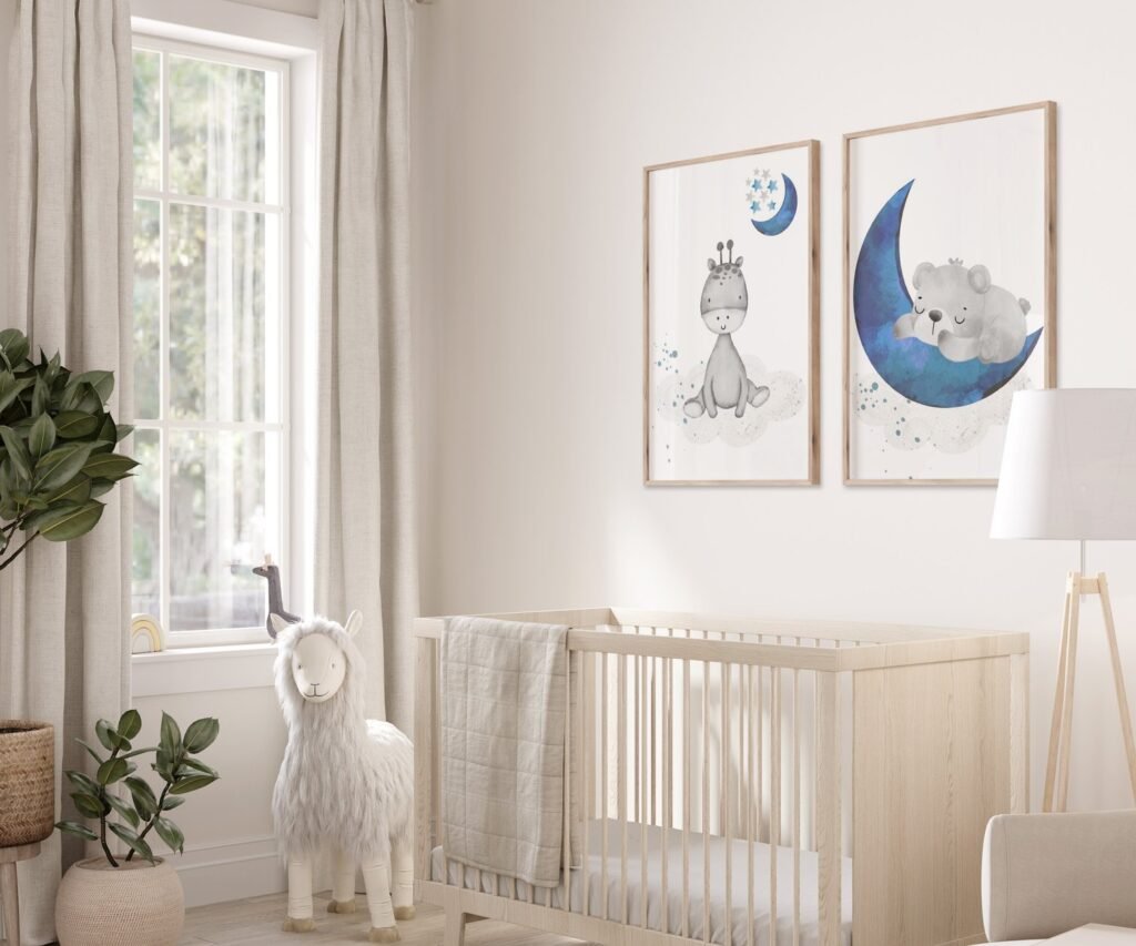 elephant and giraffe, safari animals, navy blue nursery, woodland animal set of 2