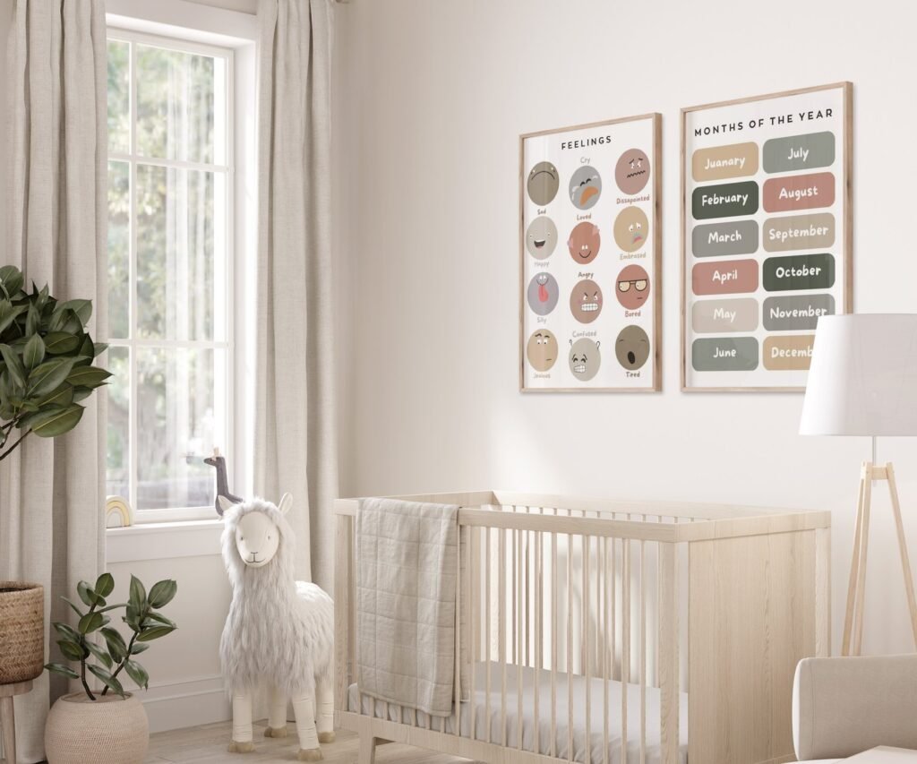 Feeling ,ABC, shape, month of the year, Educational Posters, Homeschool Prints, Montessori Classroom set of 2