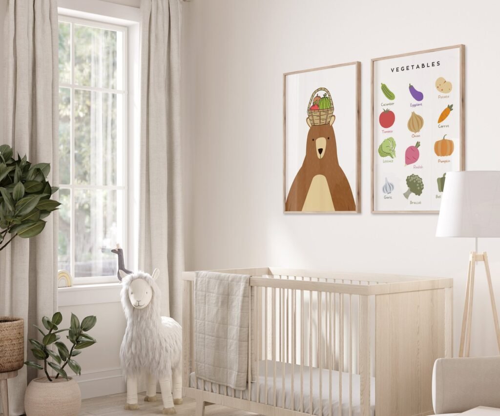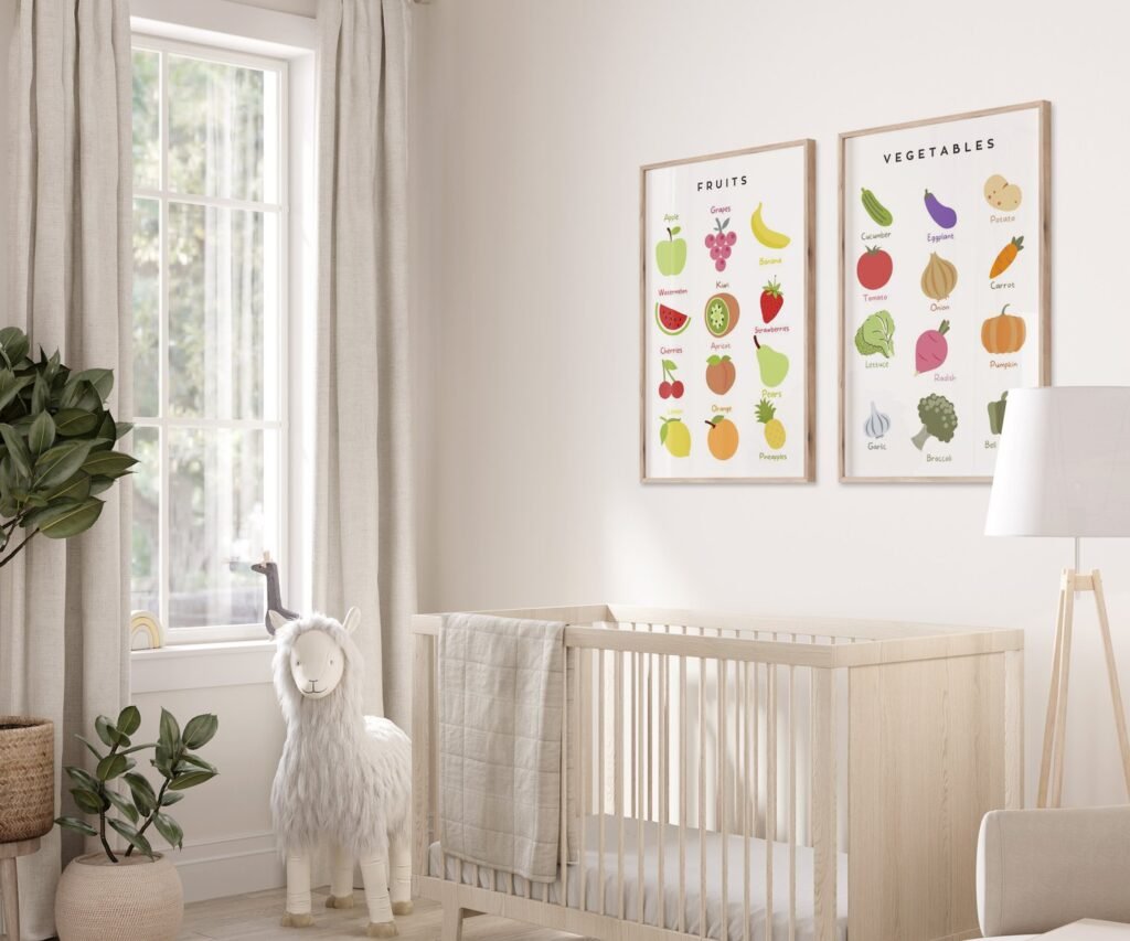 Fruits and vegetables Educational Posters, Homeschool Prints, Montessori Classroom Decor, Neutral Kids Decor, set of 2