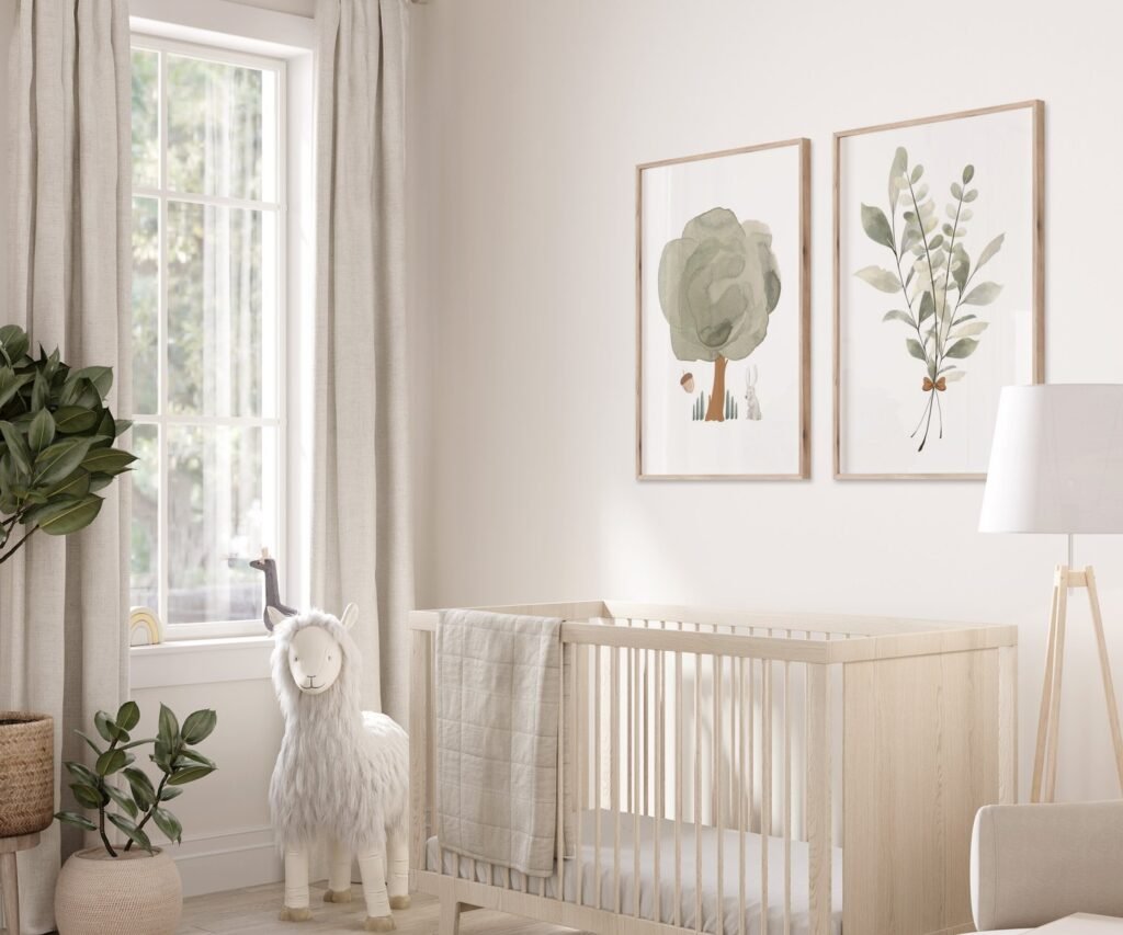 Floral Nursery Prints, wildflower butterfly boho Nursery Watercolor Flower Print set of 2