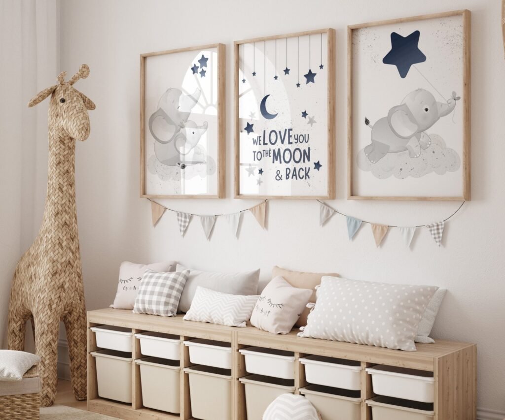 Nursery decor boy elephant, nursery wall art boy set of 3