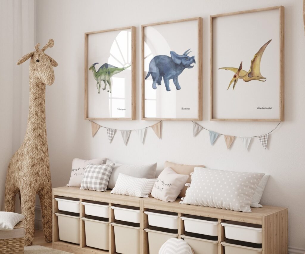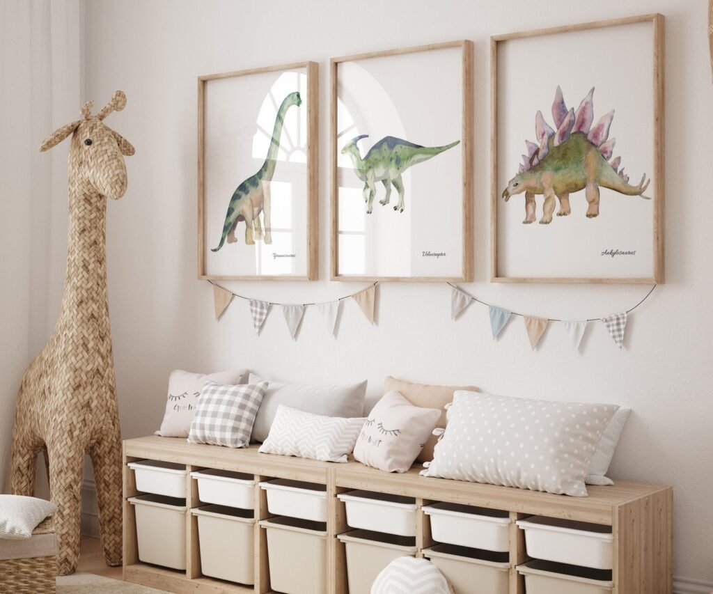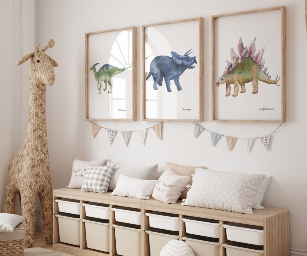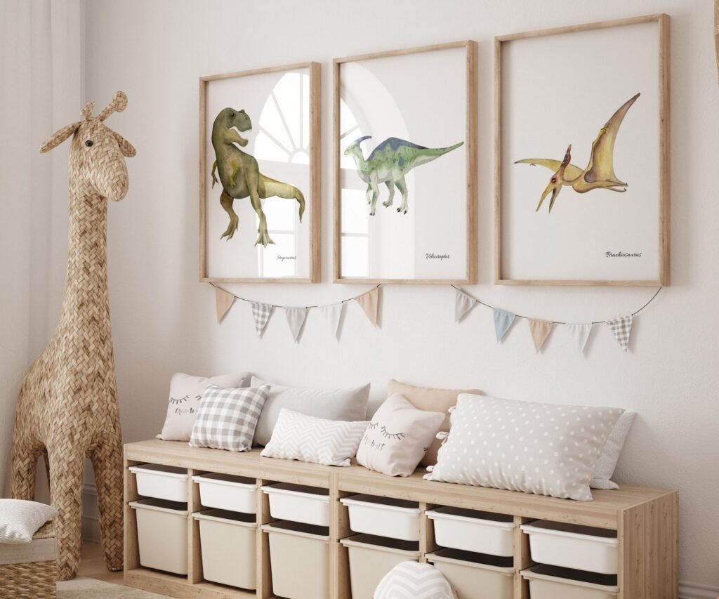 set of 3 Dinosaur Art Prints, Kids Gallery Wall Set, Dinosaur Wall Art, Dinosaur Nursery, Boys Room Dinosaur Decor, Kids Room Wall Art Dinos