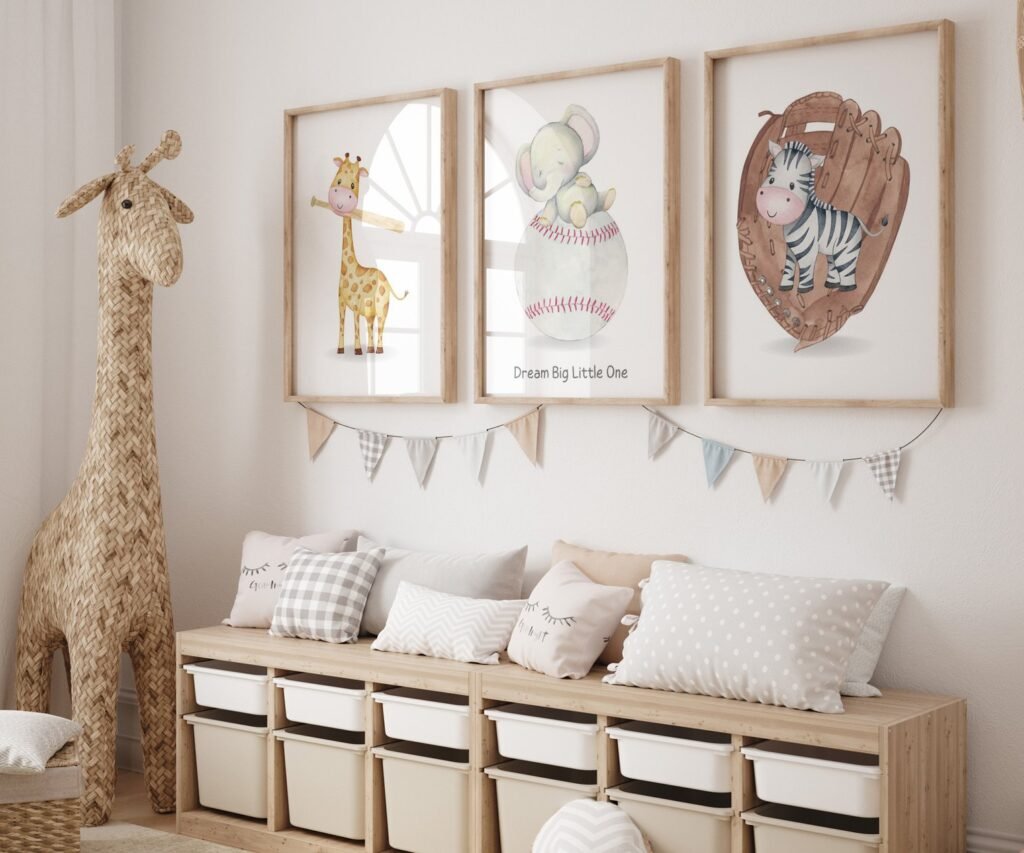 set of 3 Baseball nursery decor, Baby boy sports nursery, Animal sports, Baseball print set, Nursery sports decor, Baseball posters