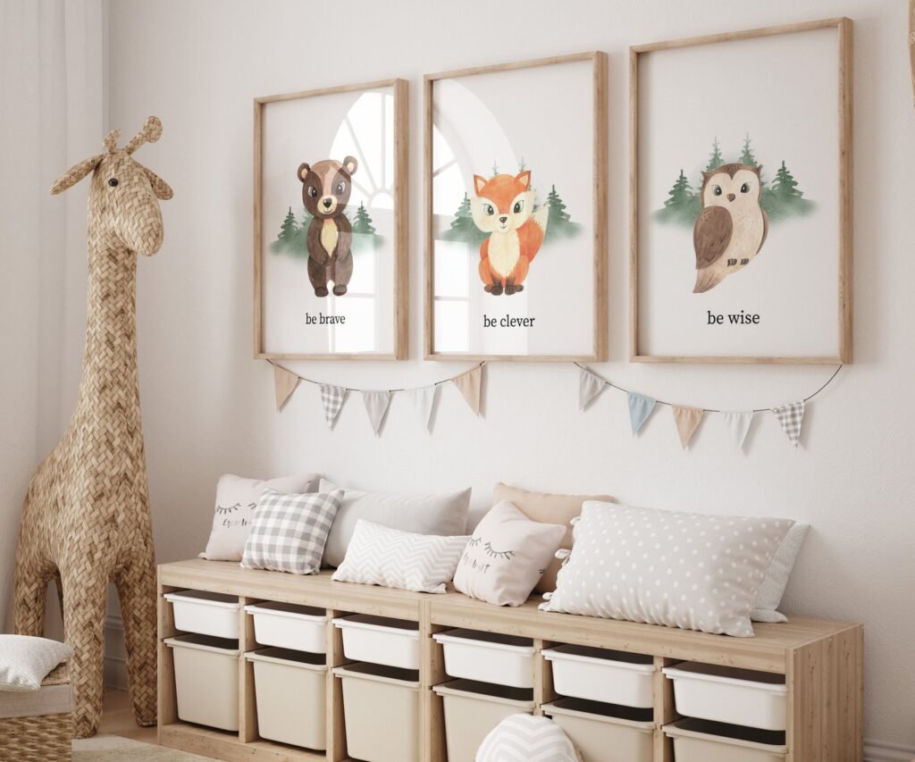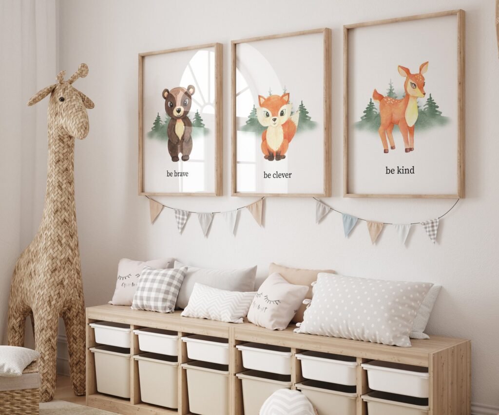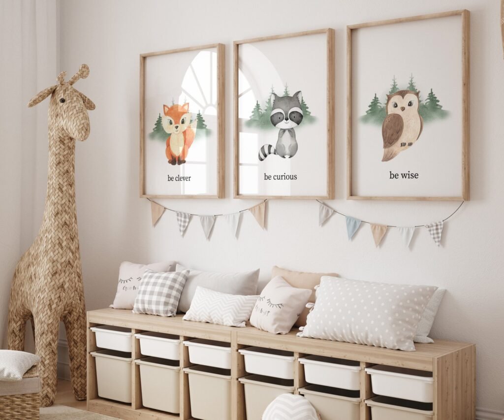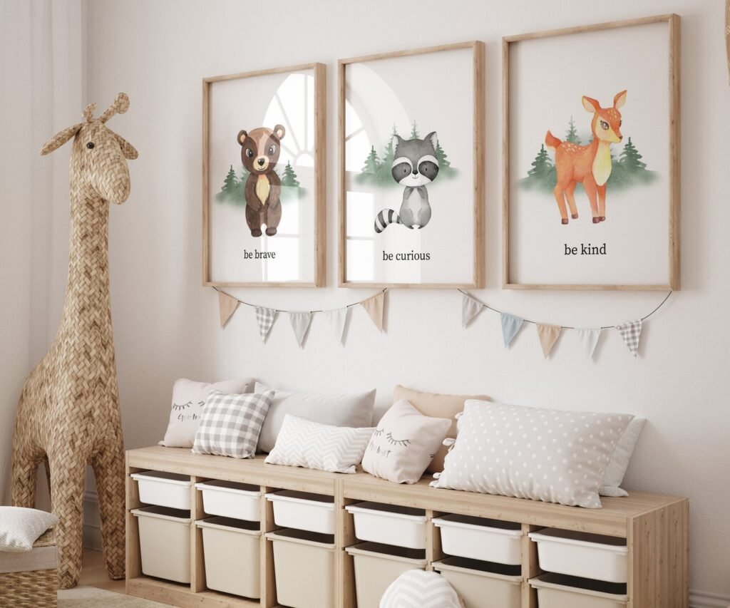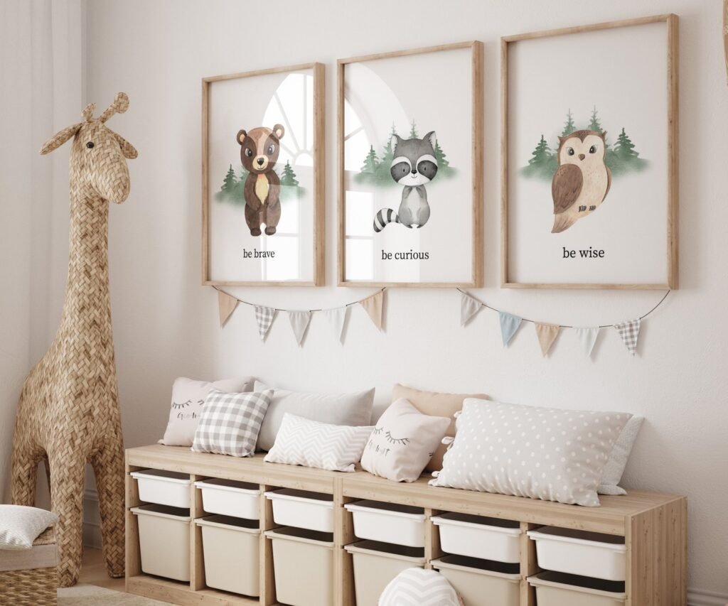 set of 3 Woodland Nursery wall art, Bear Wall art, Forest nursery- Nursery Prints Watercolor Woodland