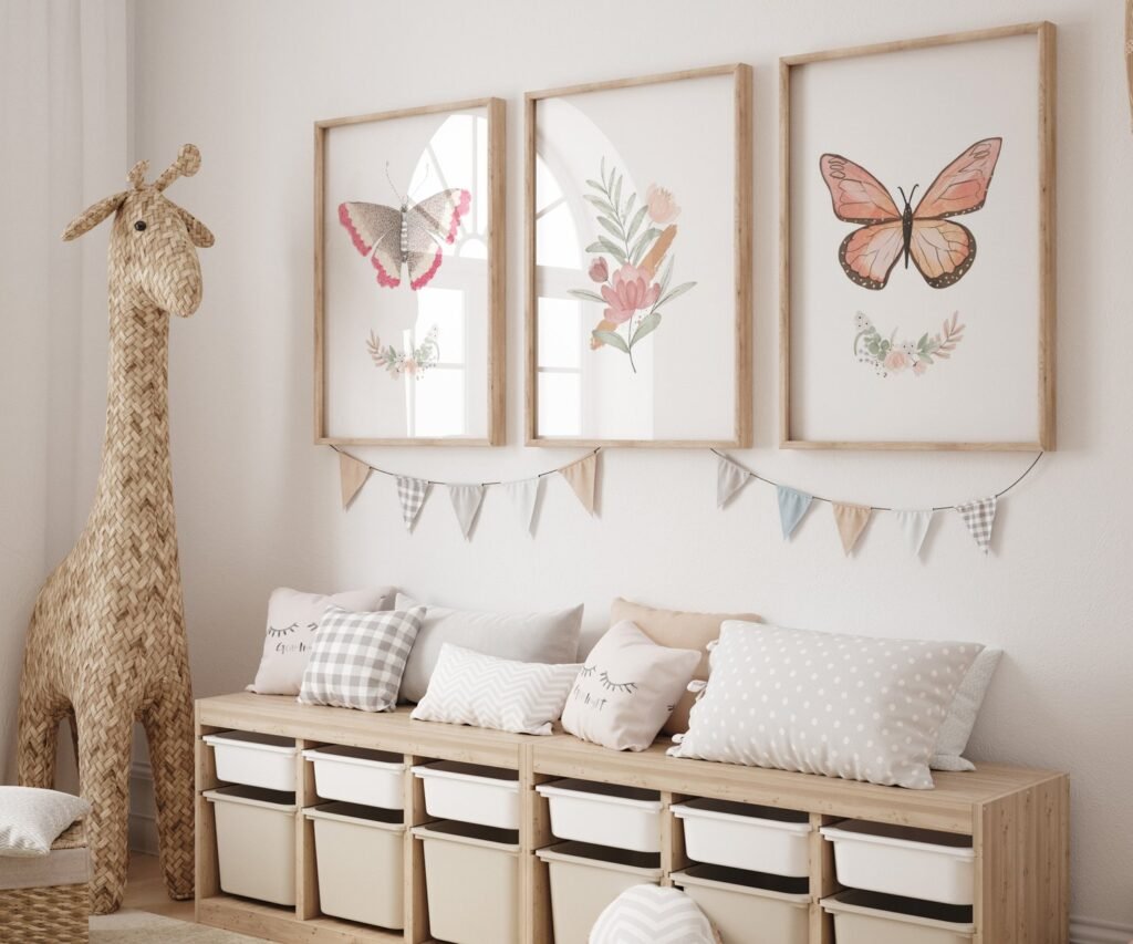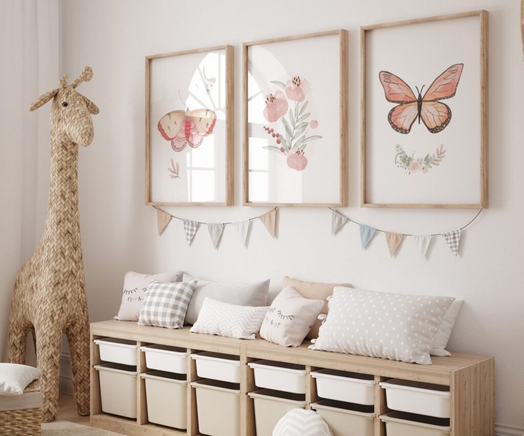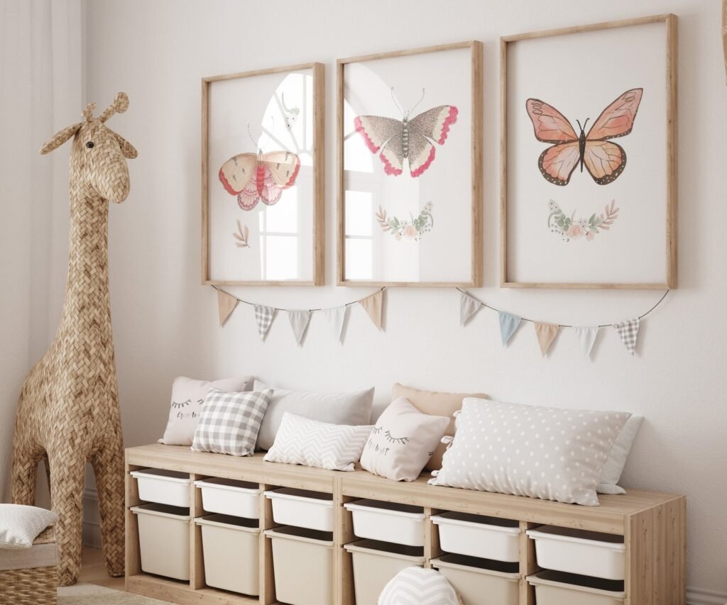 Boho butterflies, nursery printable art, Blush pink girls print, girl’s room decor, vintage decor, boho girl’s nursery, butterflies wall art set of 3