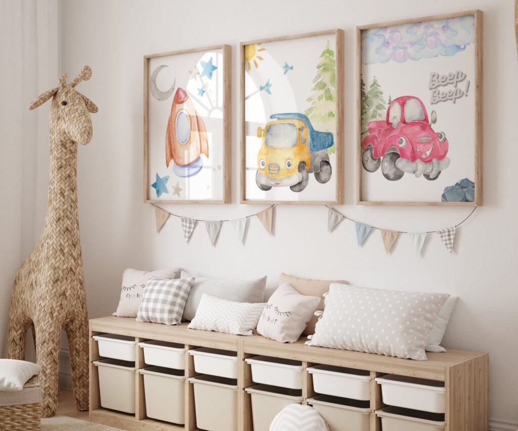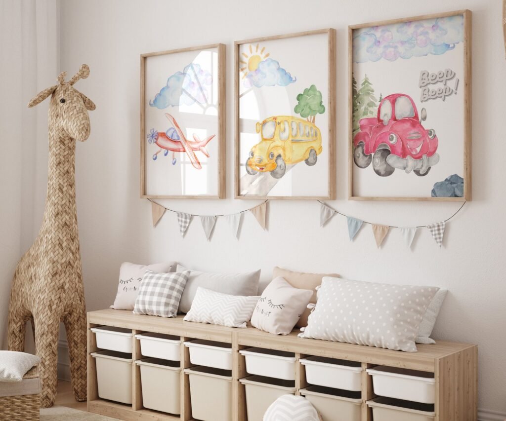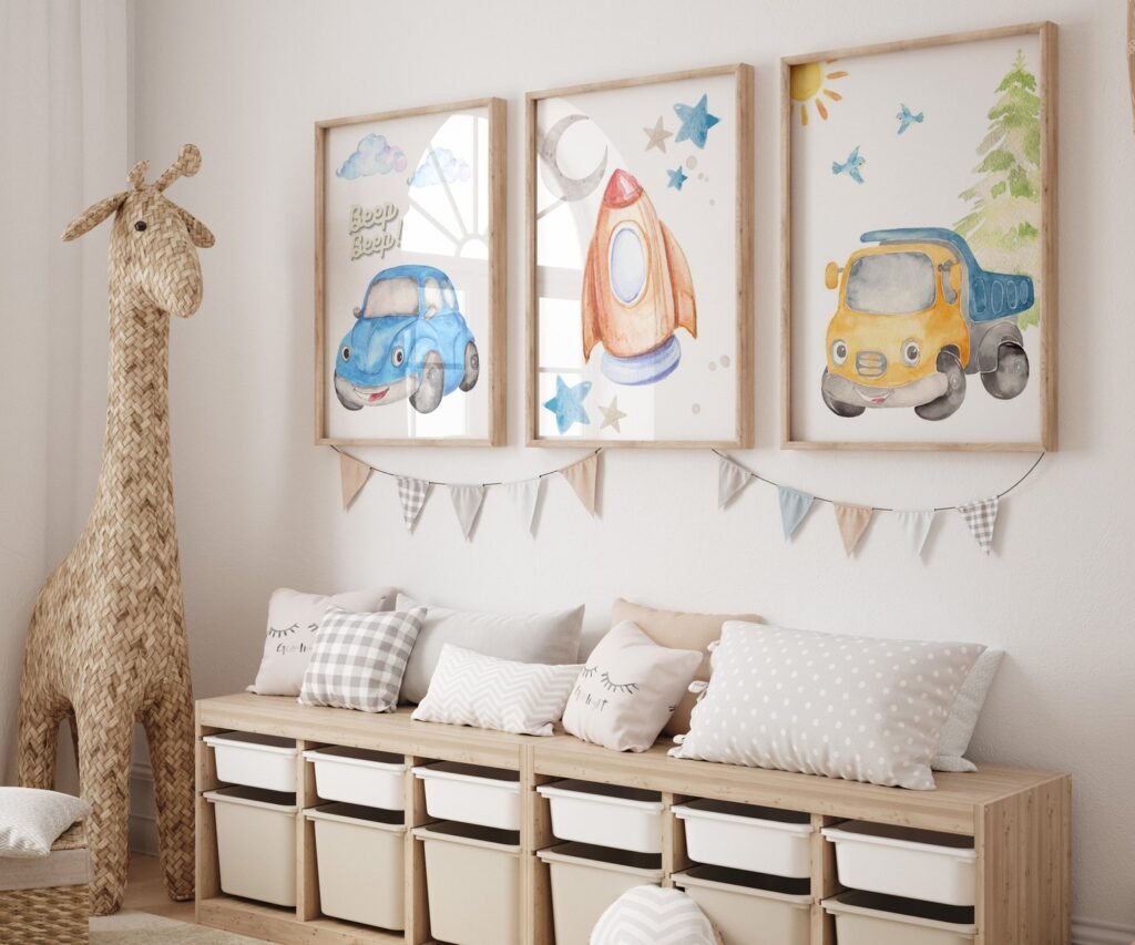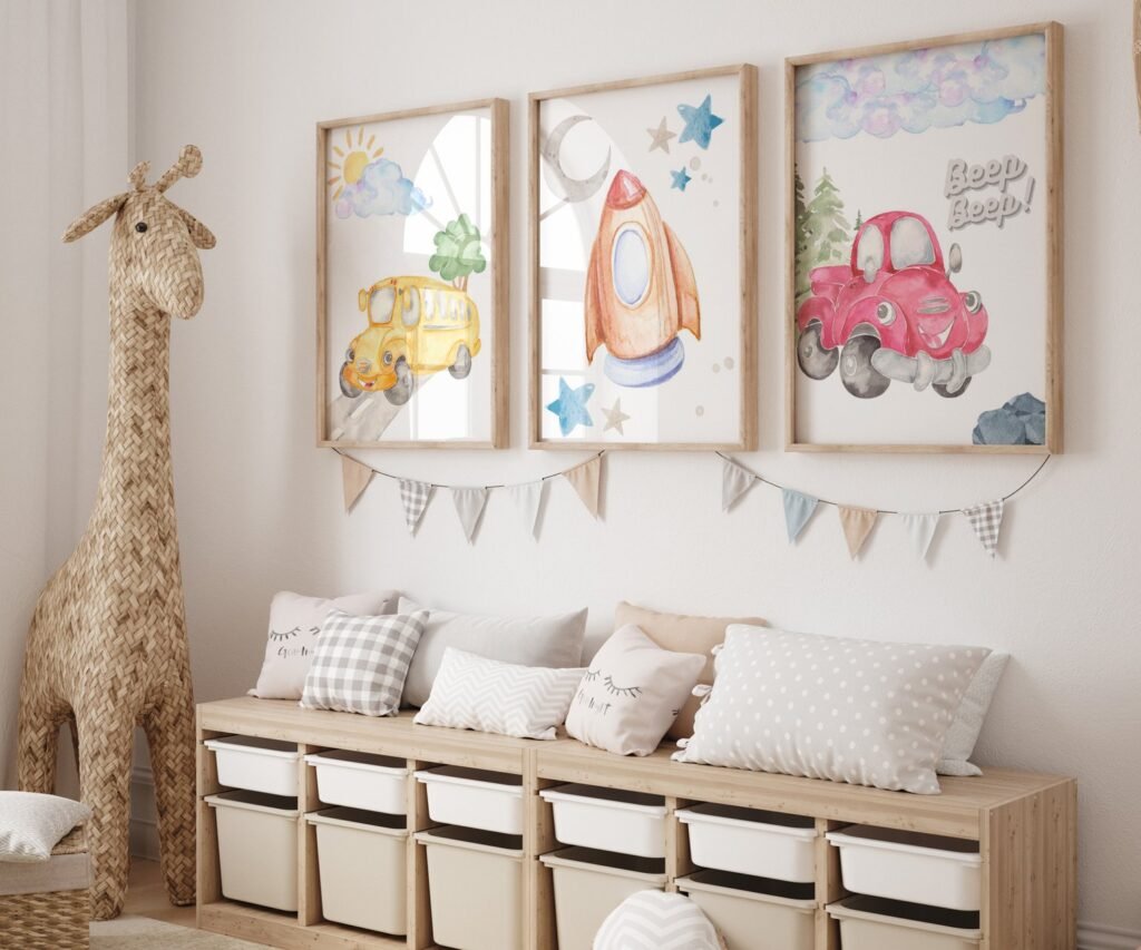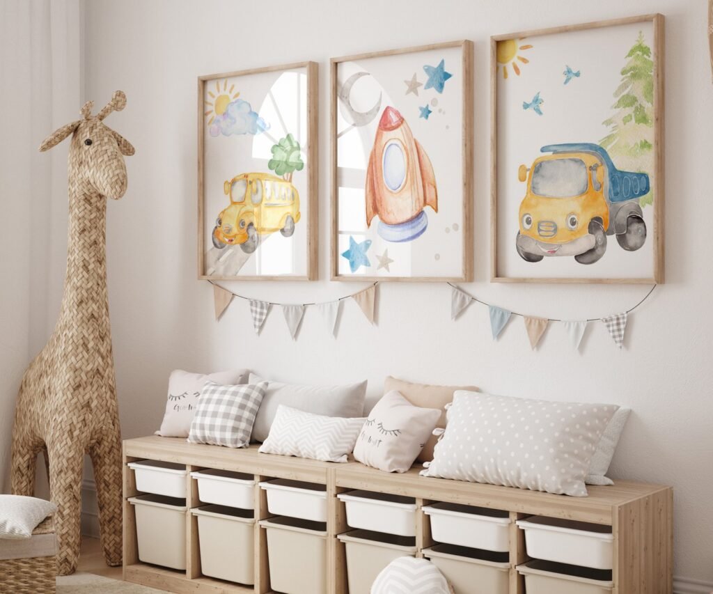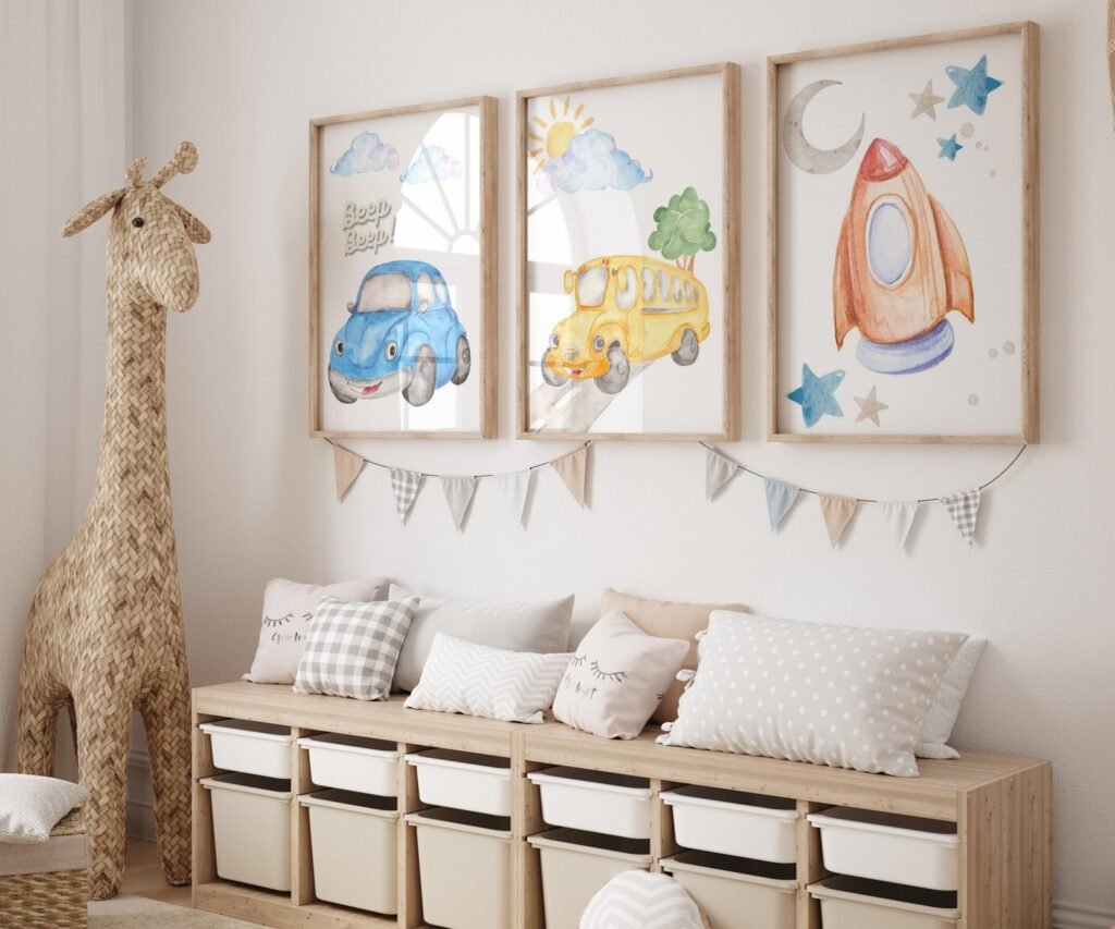 Car Nursery,Train, Rocket, Plane, transportation set of 3