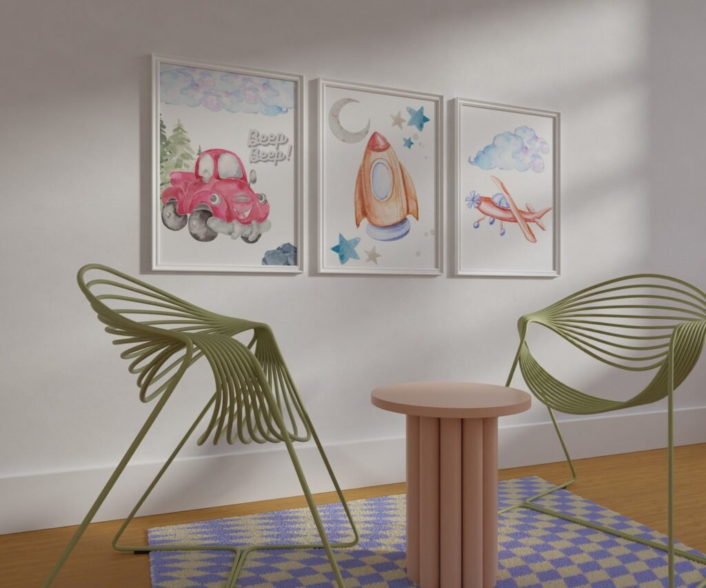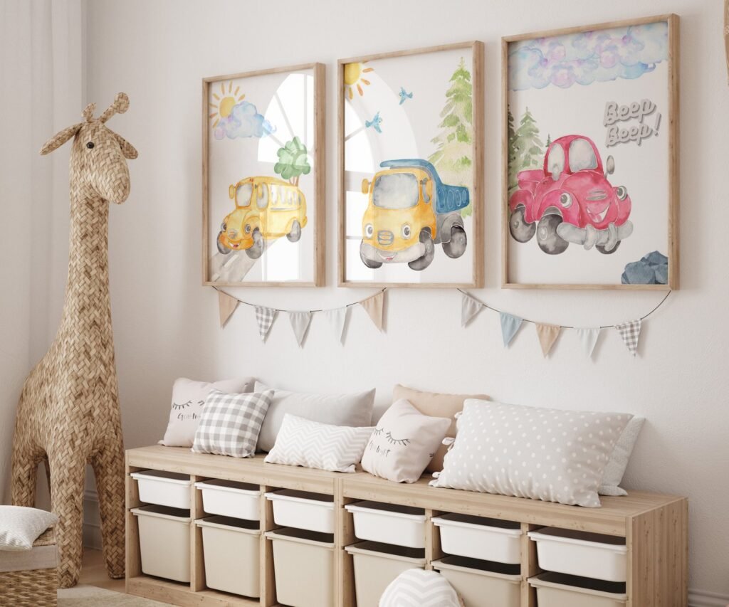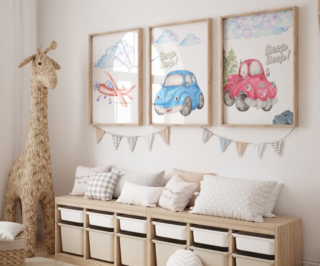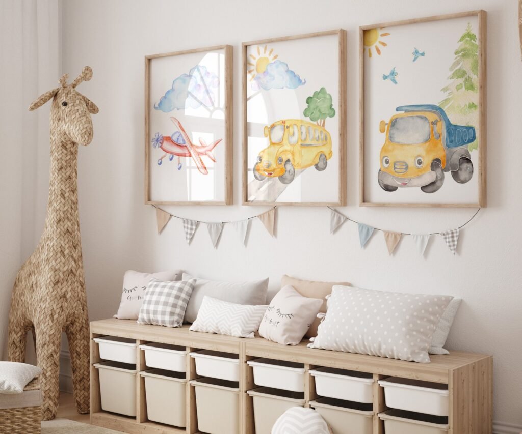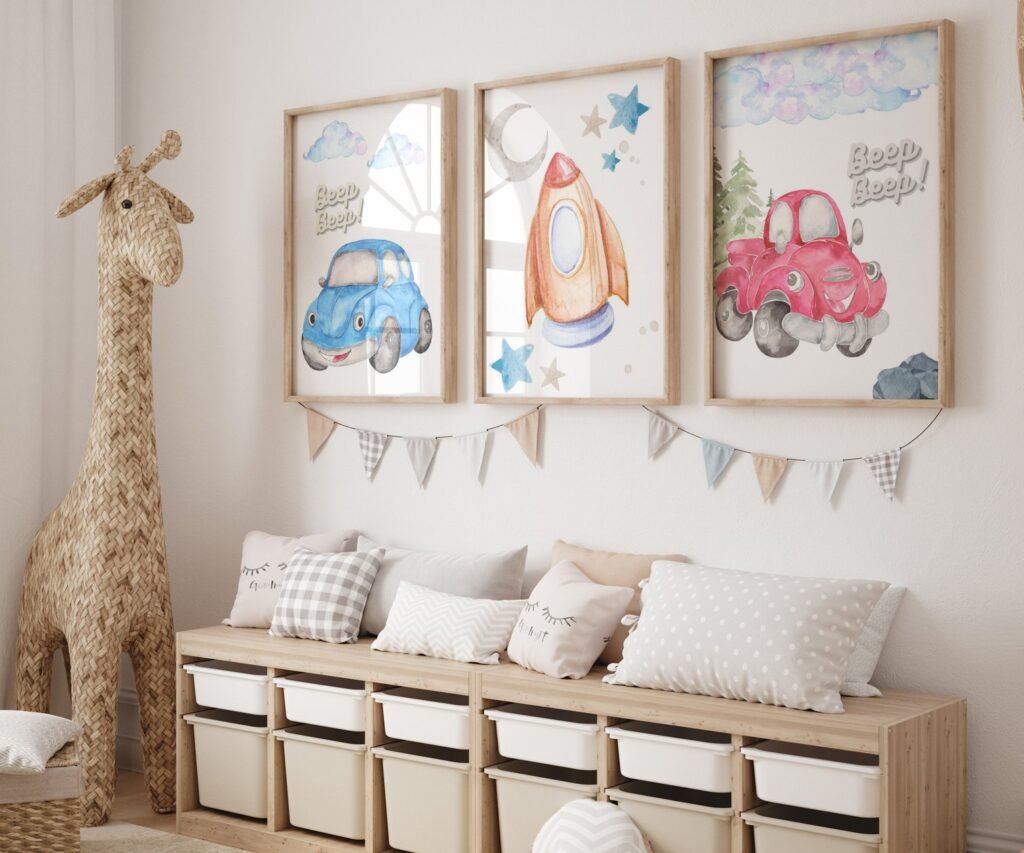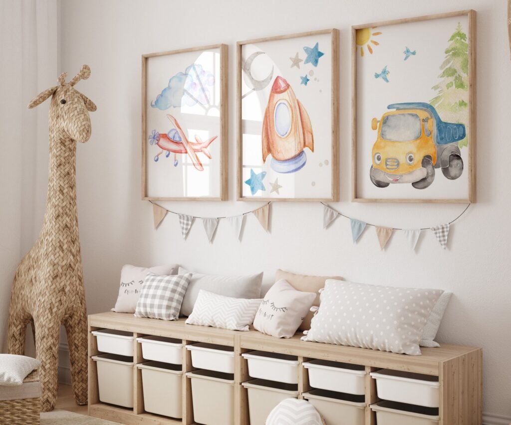 Car Nursery,Train, Rocket, Plane, transportation set of 3
