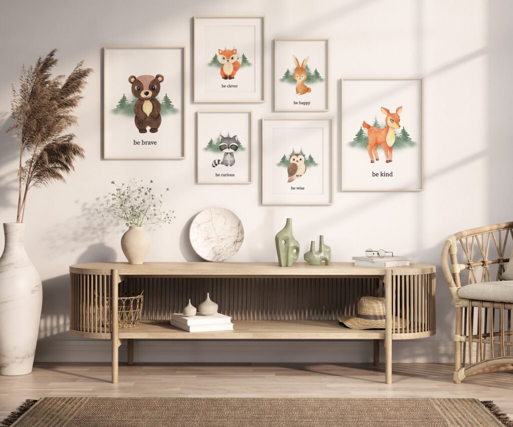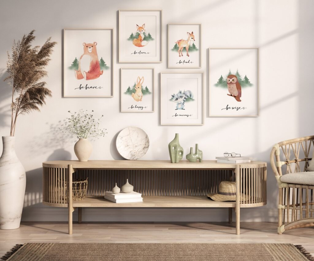 Bear, Fox, owl, rabbit Woodland Nursery Prints, Woodland Nursery Decor, Forest set of 6