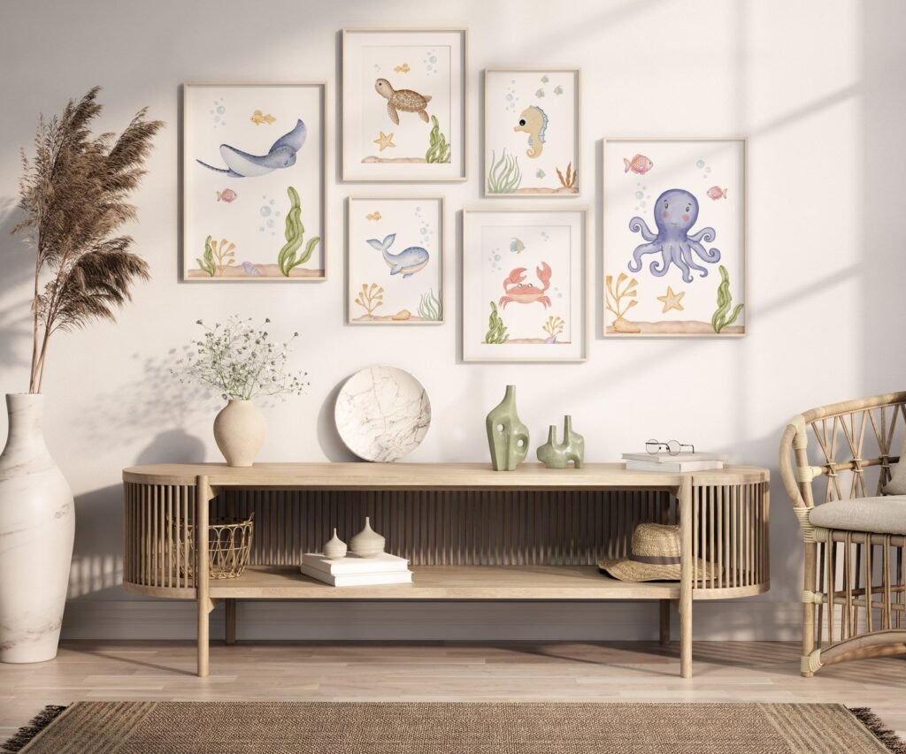 Set of 6 Under the Sea Nursery Prints, Nautical Ocean Animal Posters, Boy Nursery Prints Set, Sea Animal Wall Art, Playroom Decor