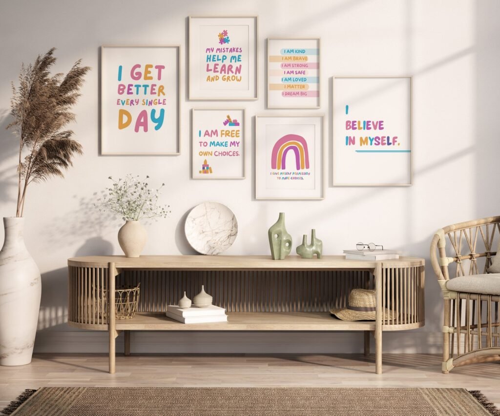 Kids Wall Art, Children’s Wall Art, Nursery Set of 6 Prints, Educational Wall Art, Alphabet, Numbers, Colours, Shapes , Classroom print