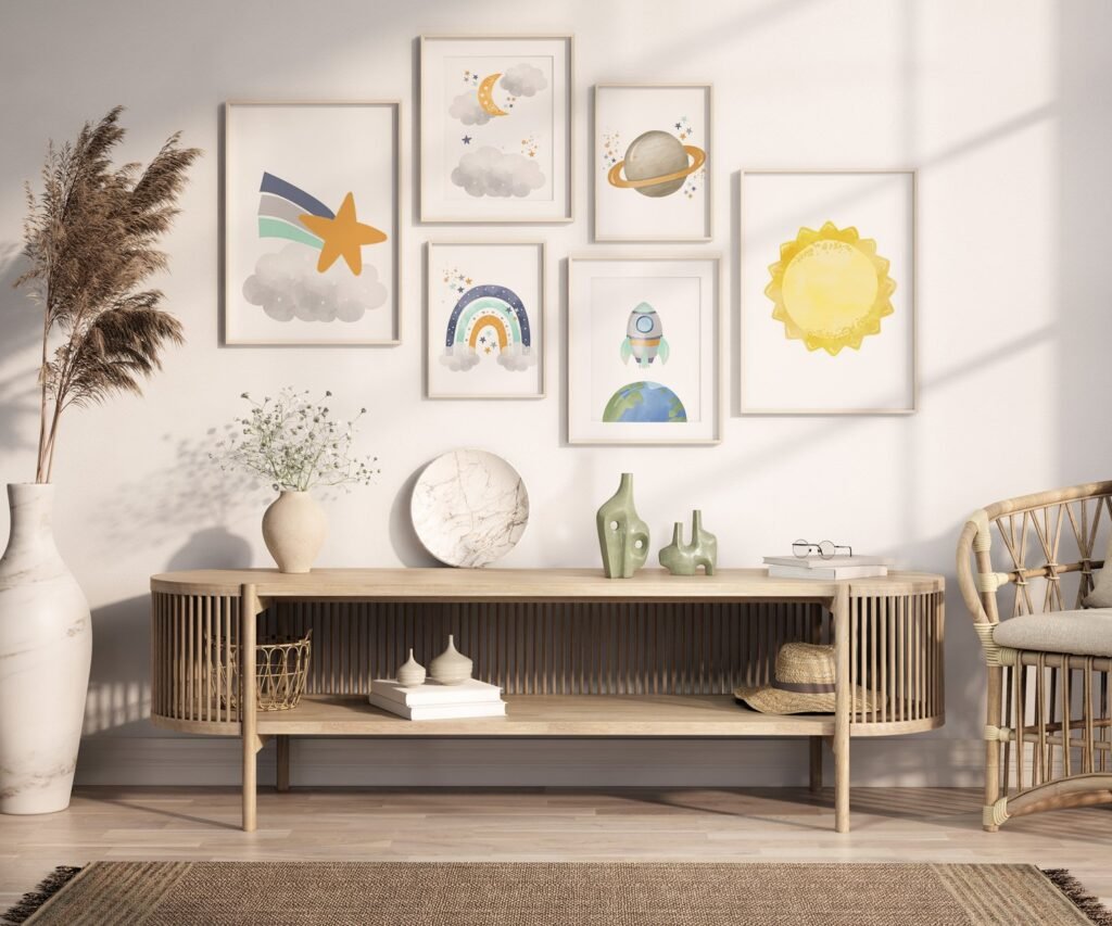 Neutral nursery print set, Space, Earthy tones, planet set of 6