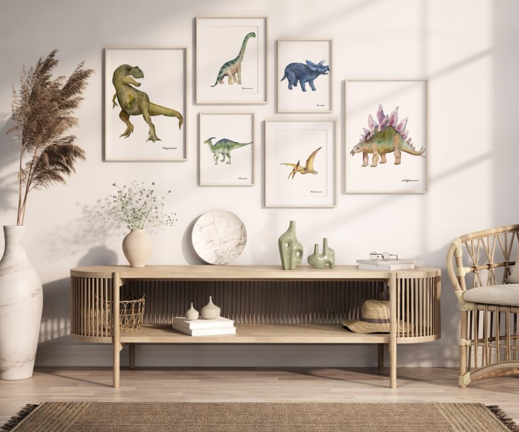 Set of 6 Dinosaur Art Prints, Kids Gallery Wall Set, Dinosaur Wall Art, Dinosaur Nursery, Boys Room Dinosaur Decor, Kids Room Wall Art Dinos