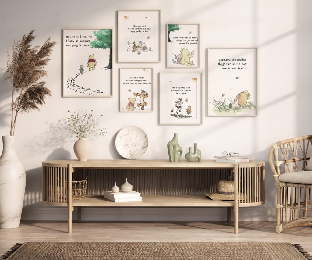 Winnie the Pooh Quote Prints, Black and White Pooh, set of 6