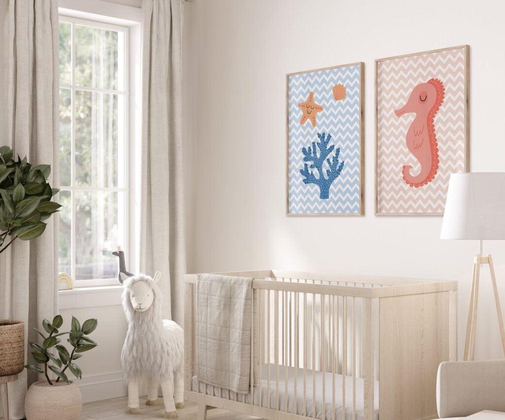 Safari Woodland Elephant Giraffe Bunny Baby Girls, Black & White Pink Flowers Floral Nursery Prints set of 1