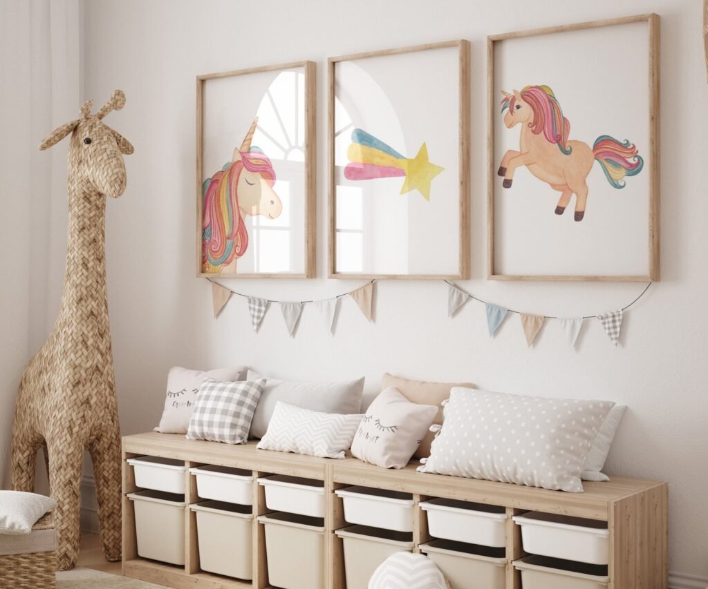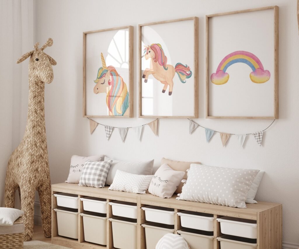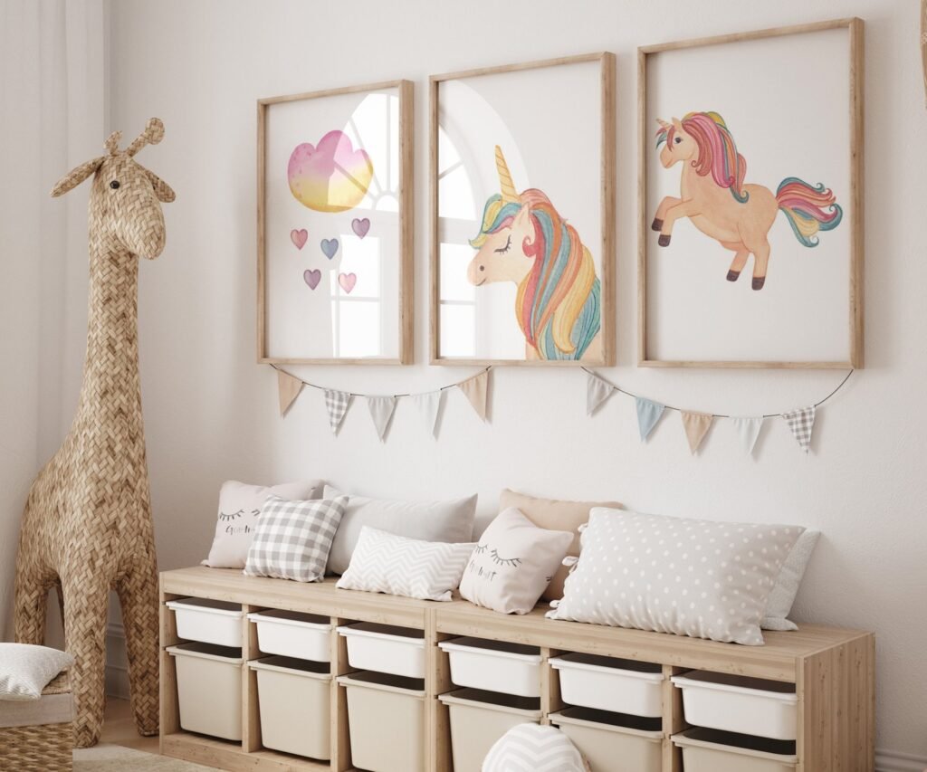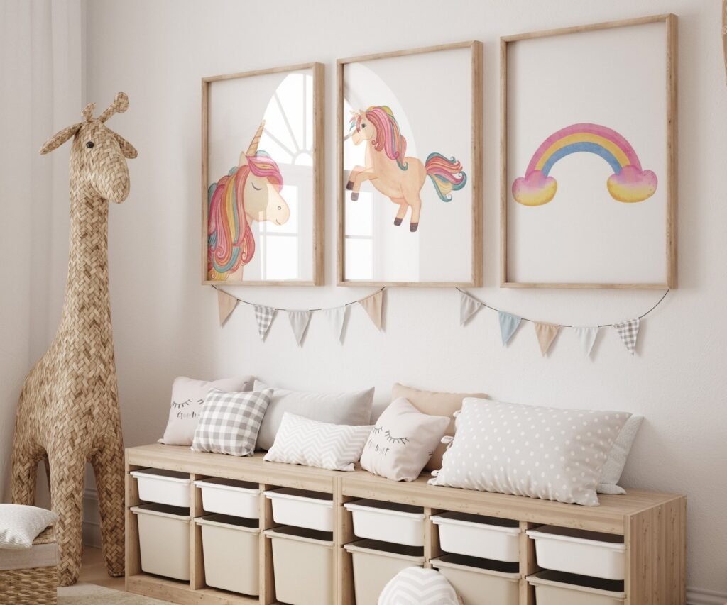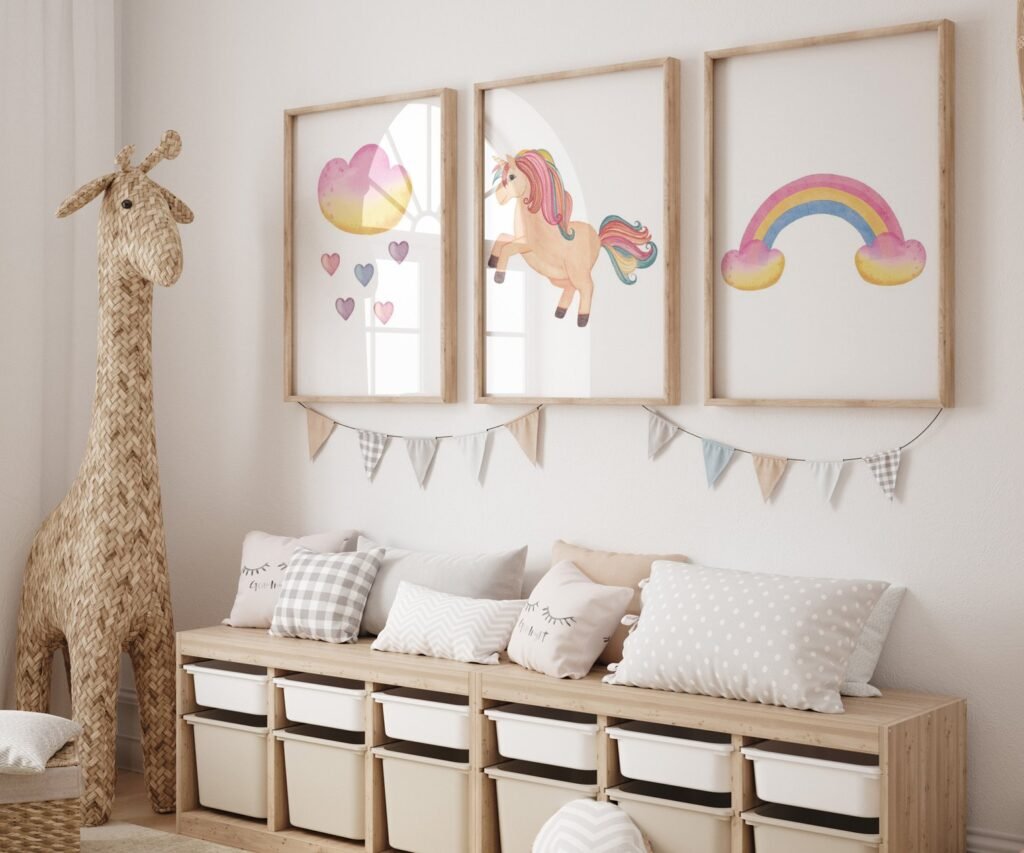 set of 3 Unicorn wall art set, Printable unicorn art, Girls room decor, Unicorn gold glitter, Unicorn prints,cloud rainbow