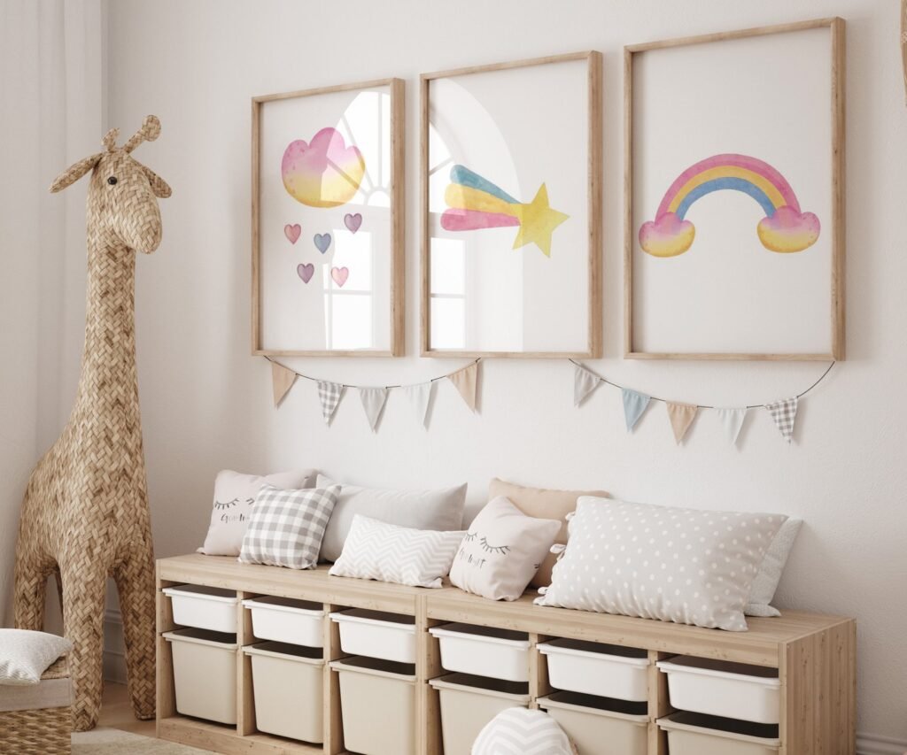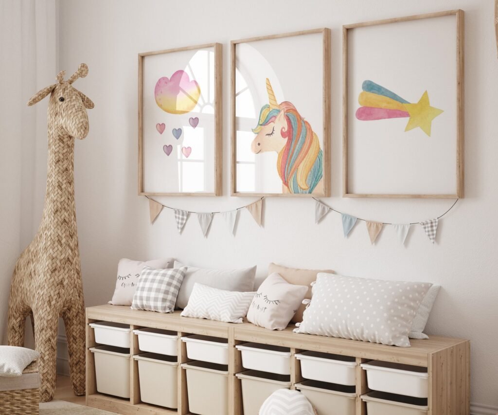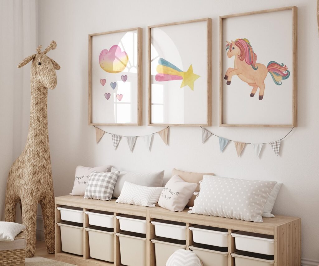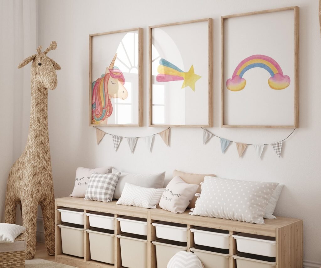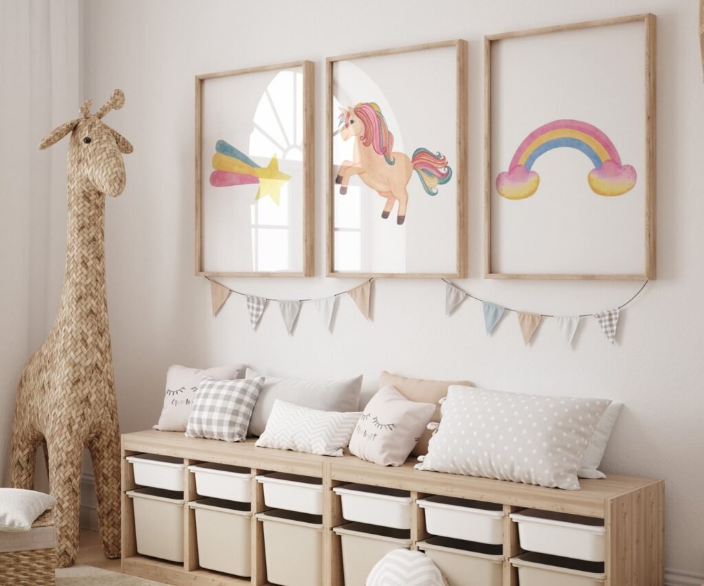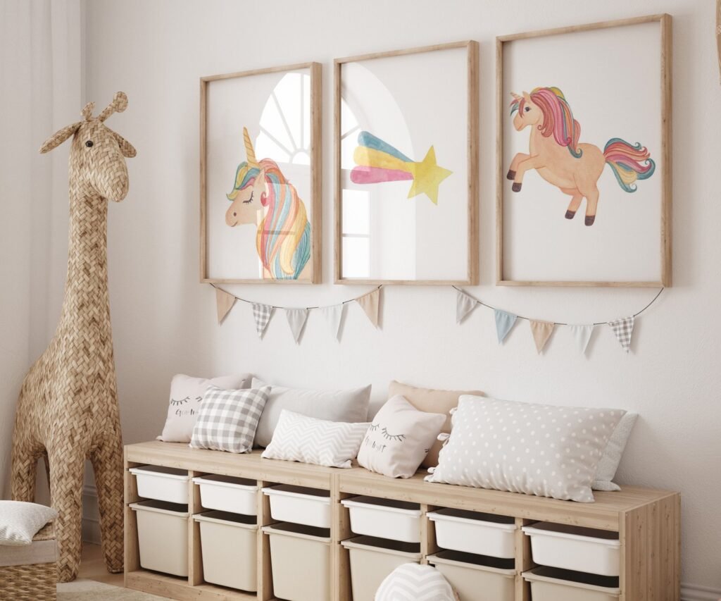 set of 3 Unicorn wall art set, Printable unicorn art, Girls room decor, Unicorn gold glitter, Unicorn prints,cloud rainbow