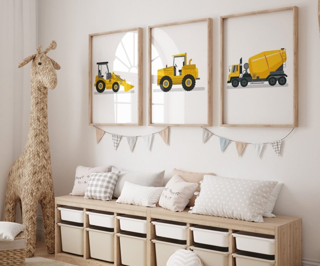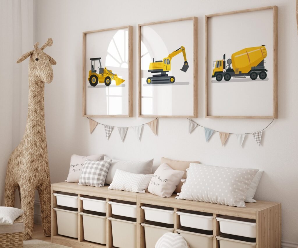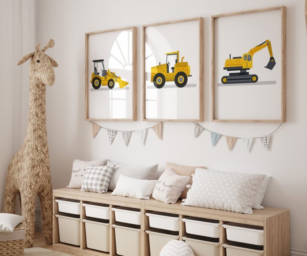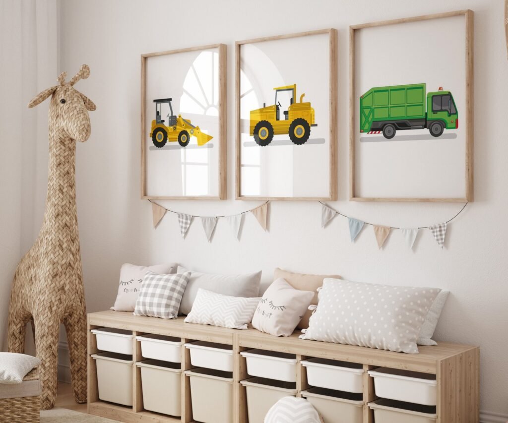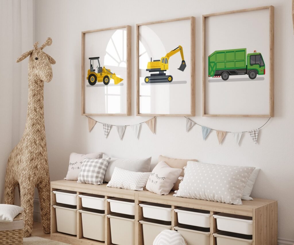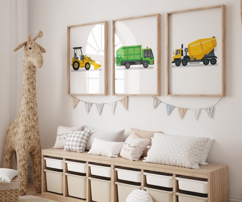 set of 3 Vehicle Prints, Construction Wall Art, Transportation Print Nursery, Kids Gallery Wall Set, Truck Wall Art, Nursery Truck Prints