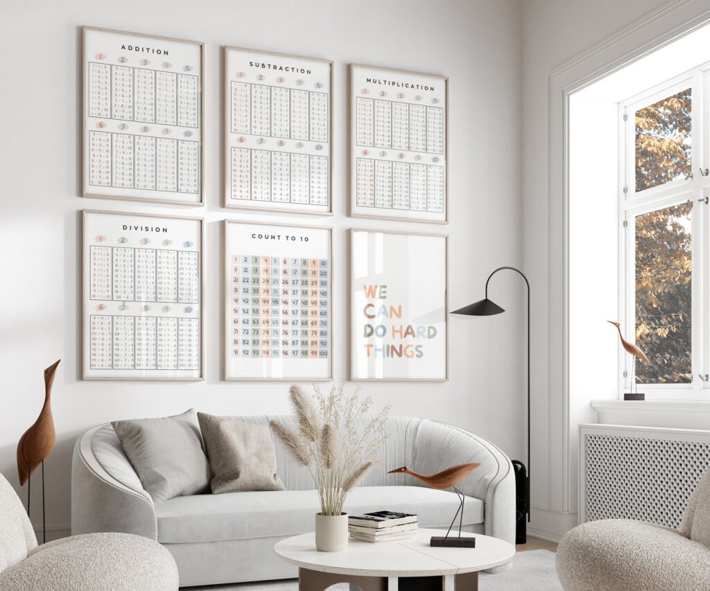 Our Addition Subtraction multiplication division Educational Posters, Homeschool Prints, Montessori Classroom Decor set of 6, soothing colors, and heartwarming quotes that are bound to bring joy and comfort to your baby’s room. Each print is thoughtfully crafted to add a touch of magic and wonder, making it an ideal gift for new parents or a special treat for your own bundle of joy.