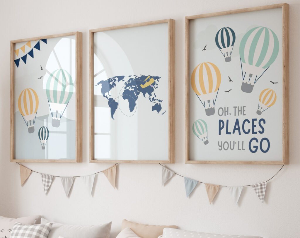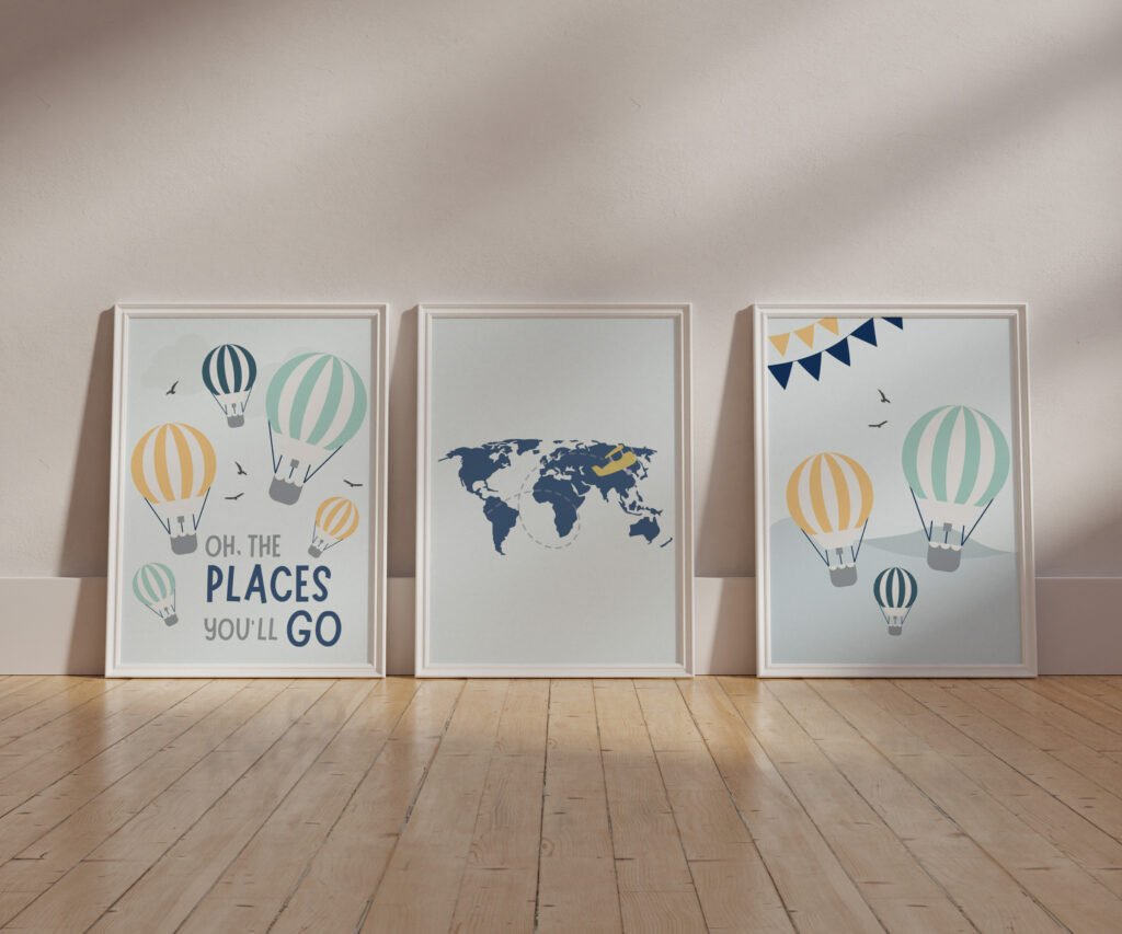 Our Adventure nursery decor, Nursery decor boy mountains adventure, nursery decor boy airplane, world map nursery, adventure awaits set of 3, soothing colors, and heartwarming quotes that are bound to bring joy and comfort to your baby’s room. Each print is thoughtfully crafted to add a touch of magic and wonder, making it an ideal gift for new parents or a special treat for your own bundle of joy.